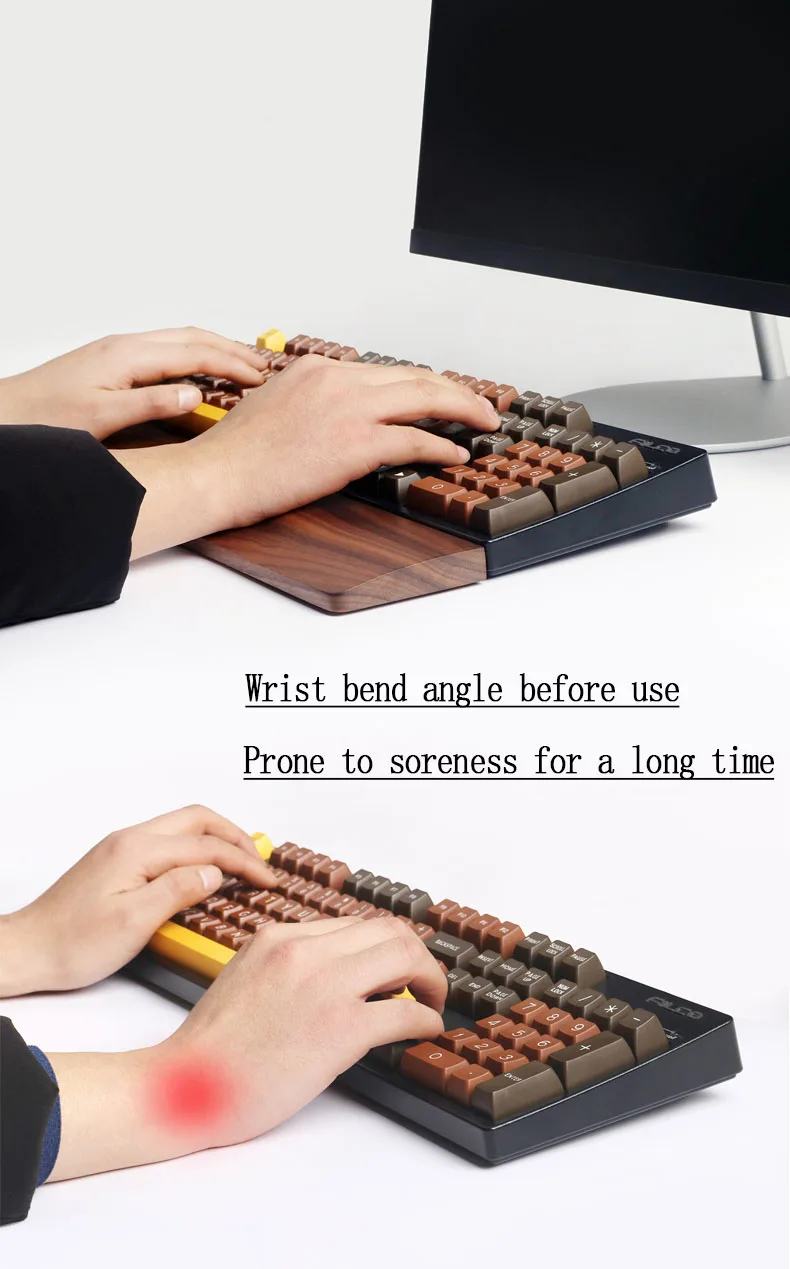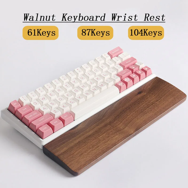Подставка для клавиатуры, из орехового дерева, эргономичная, 61 клавиша, 87, 104 клавиш, с противоскользящим ковриком, для игровой клавиатуры, для ПК
