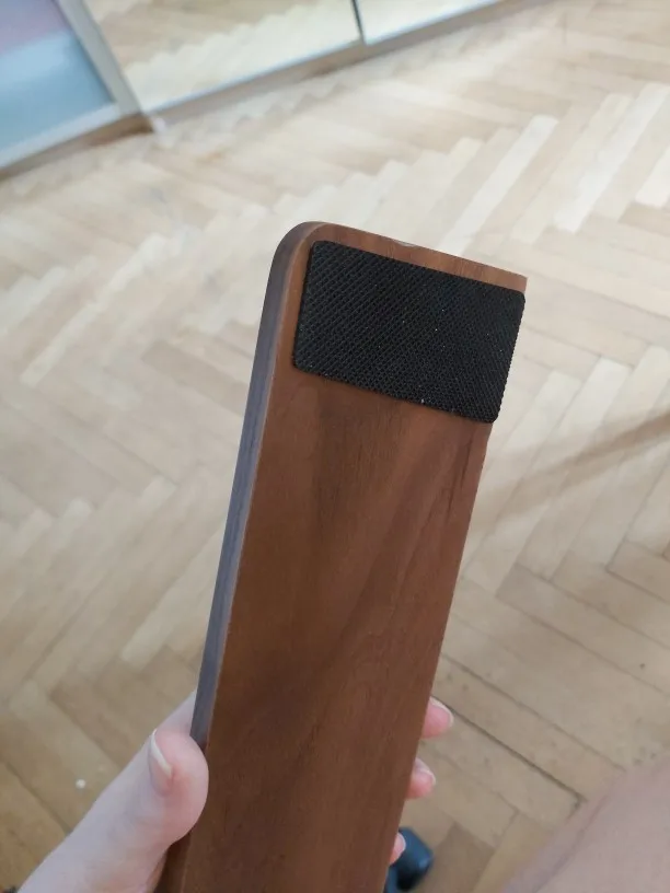 Приятный на ощупь и гладкий. Не скользит. Очистите края. К сожалению, мой отдых на запястье прибыл с вмятинками и царапинами на углах.