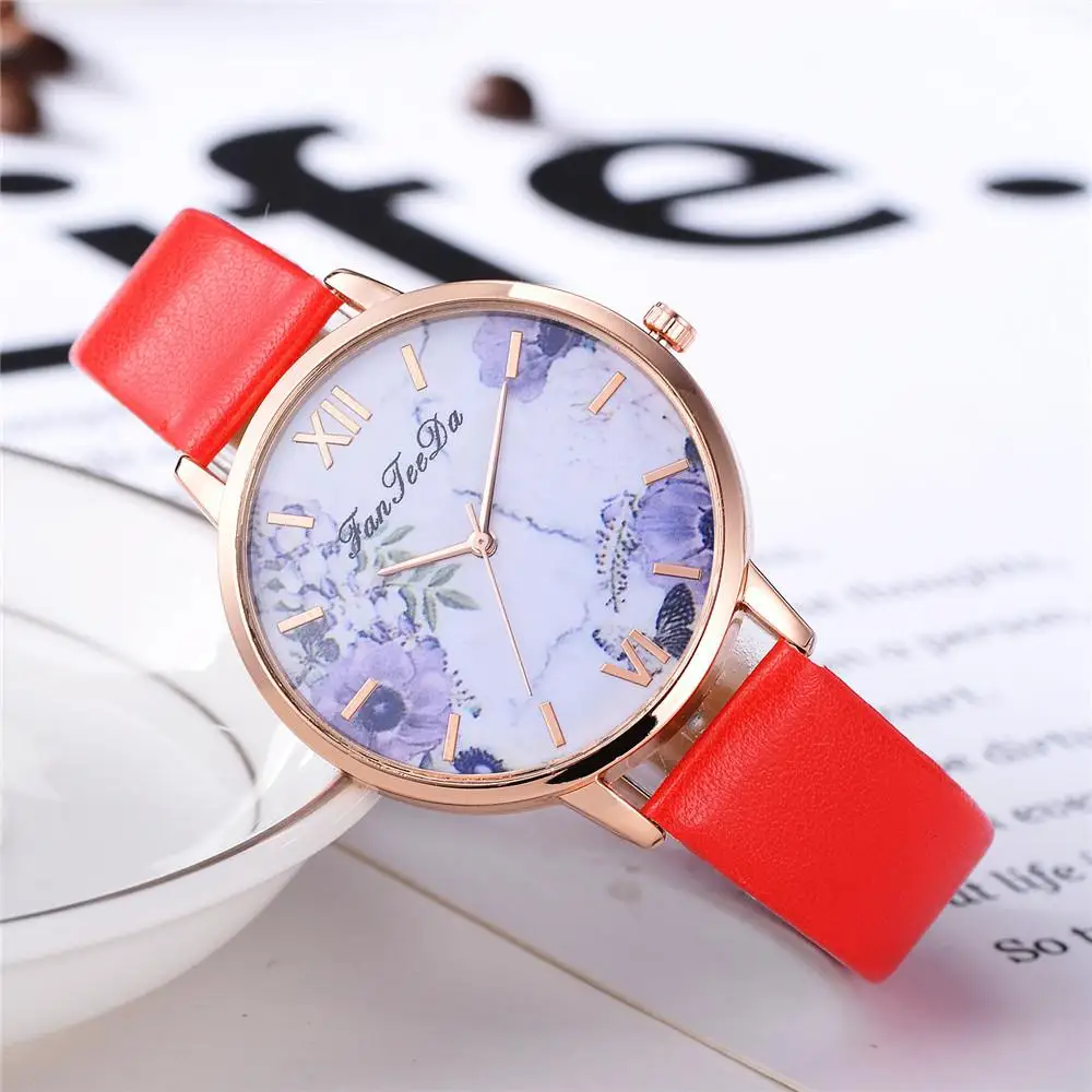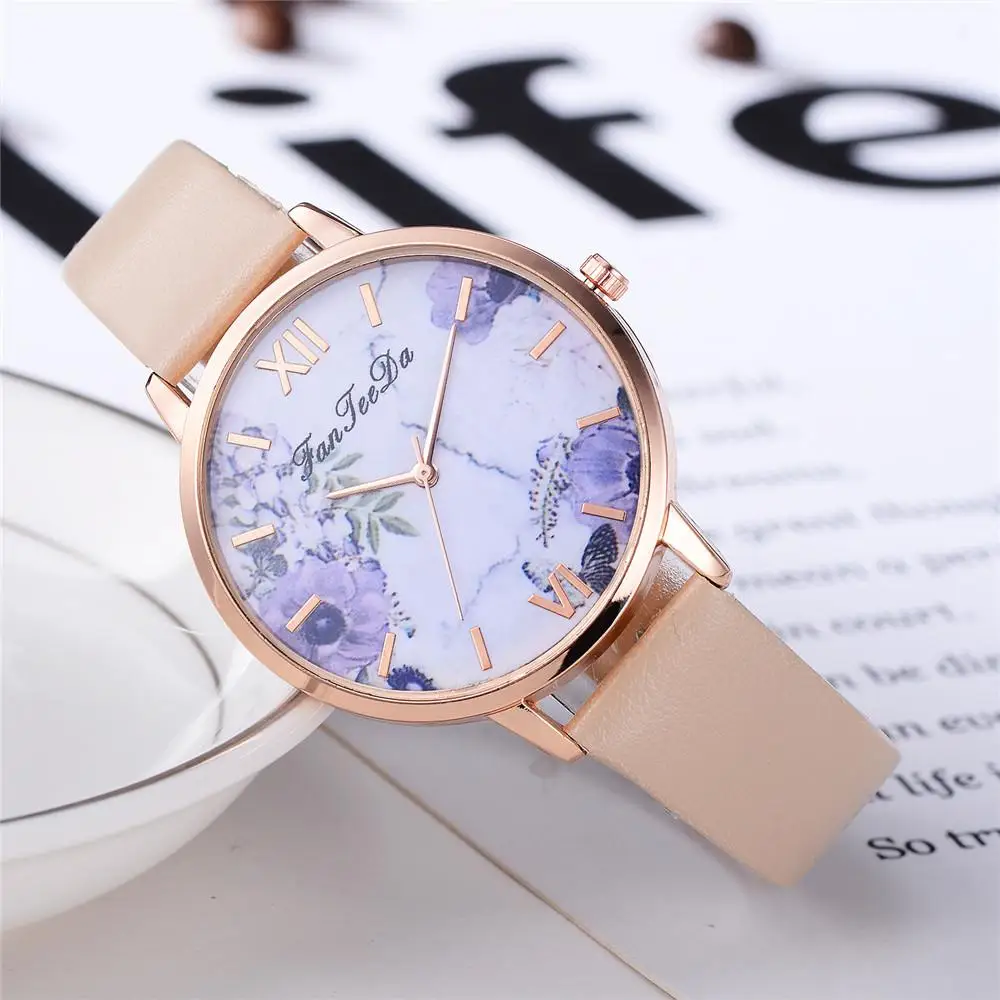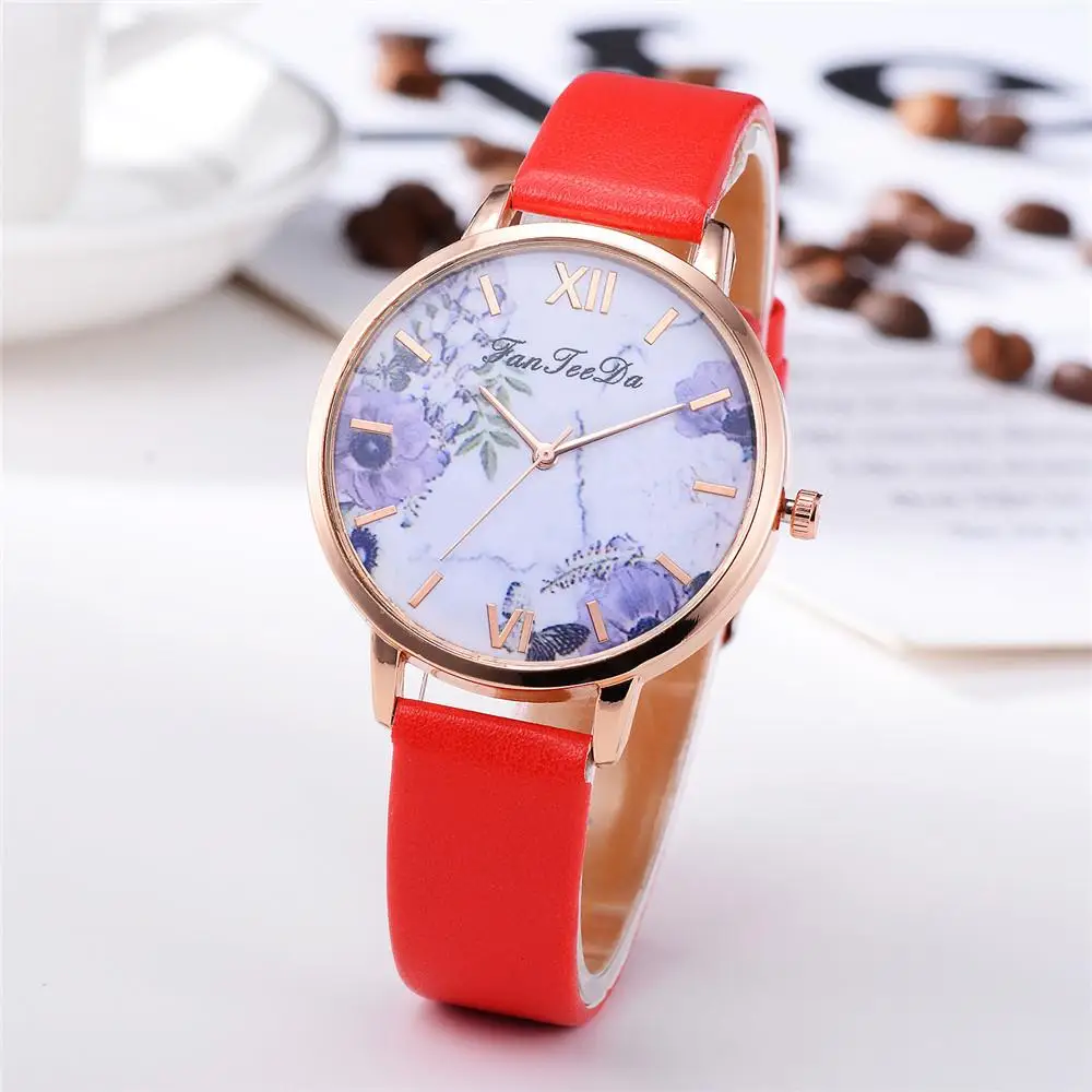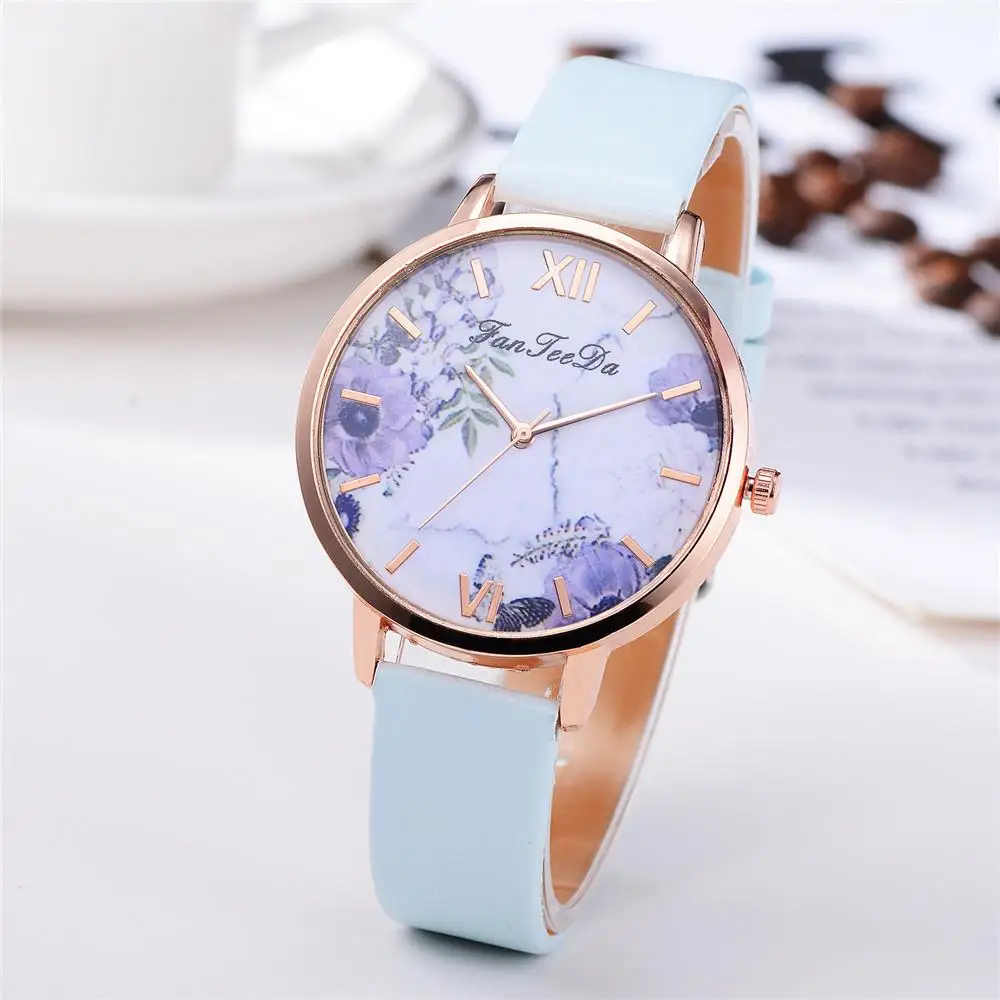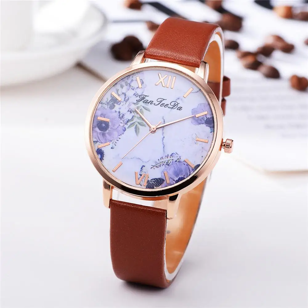 Новинка 2020, женские часы, модные повседневные женские наручные часы с цветком, зеленые винтажные кварцевые часы с кожаным ремешком, простые женские часы, подарки