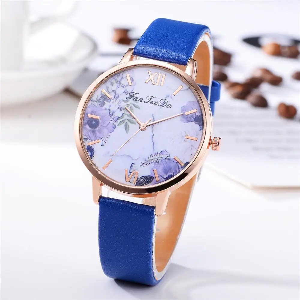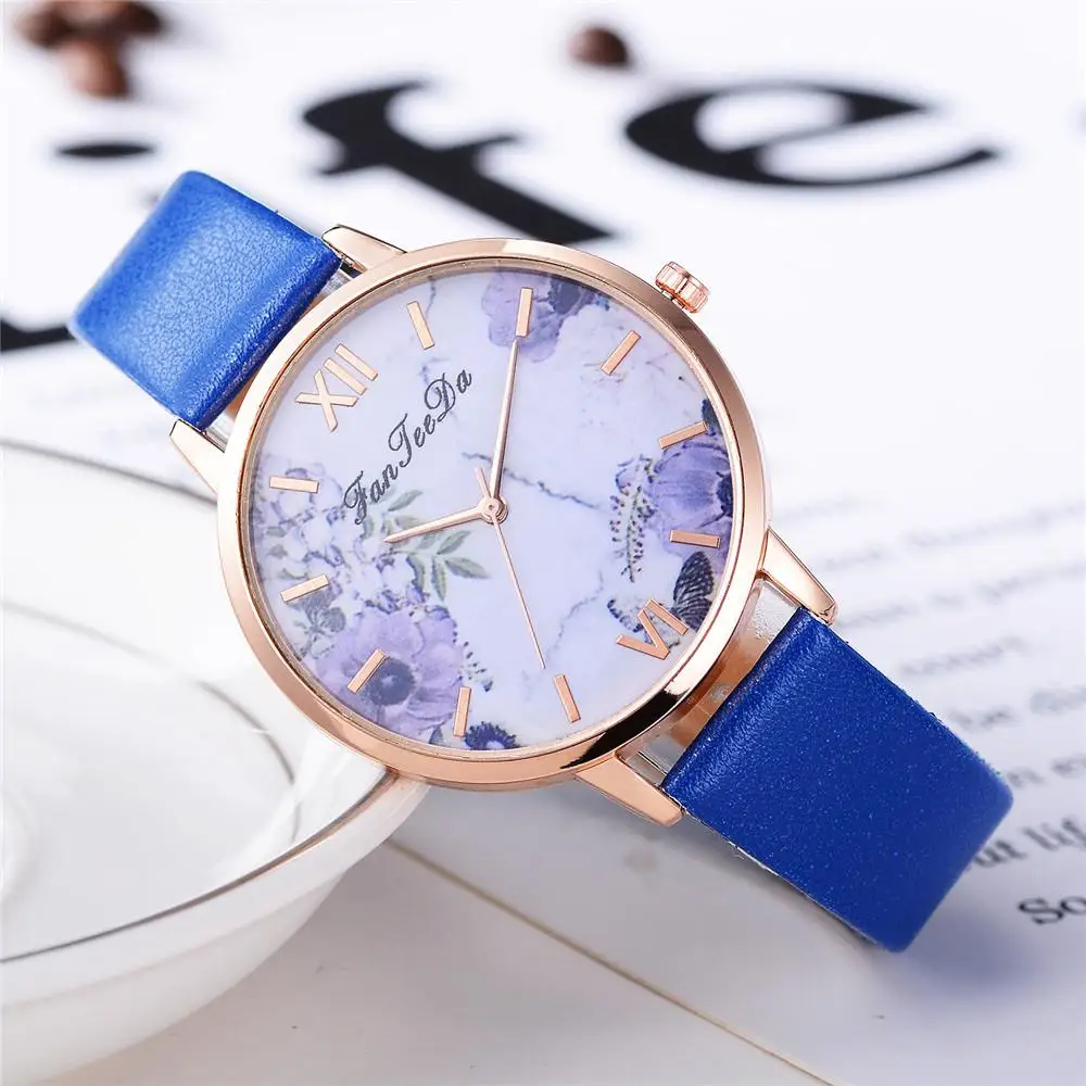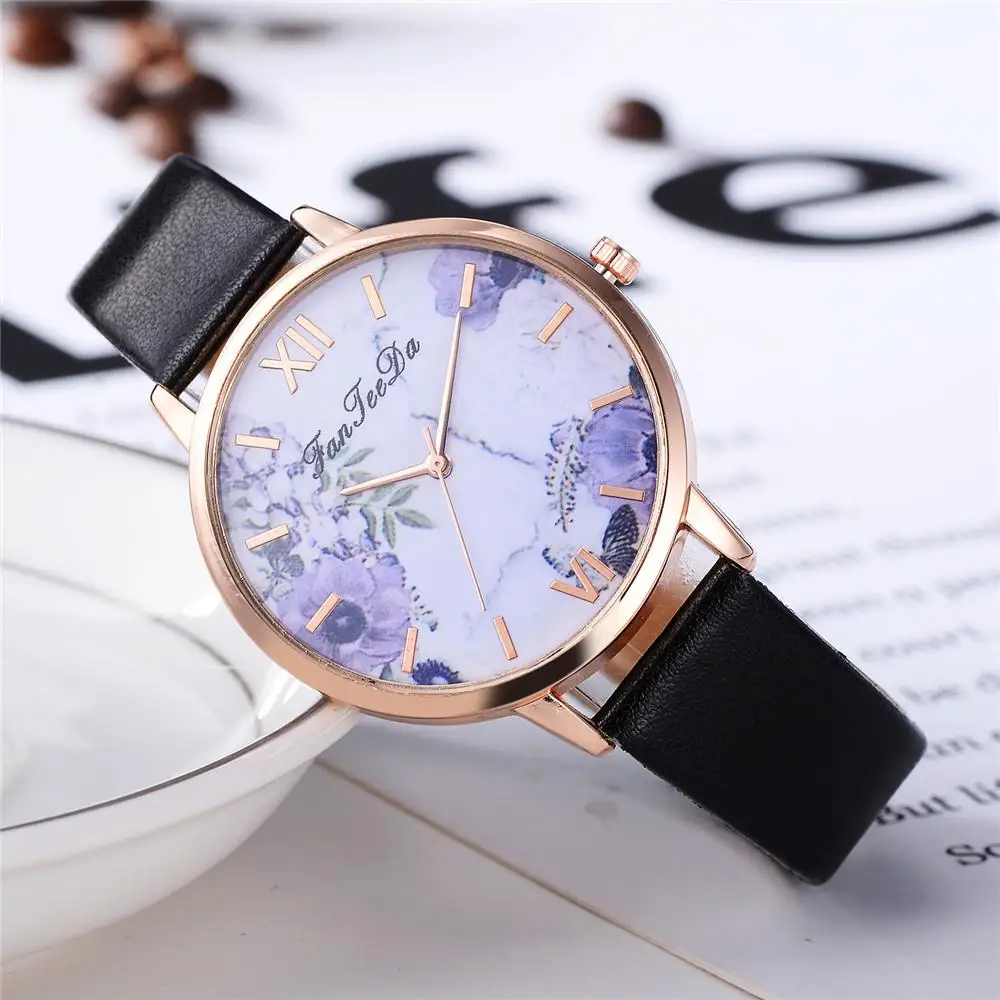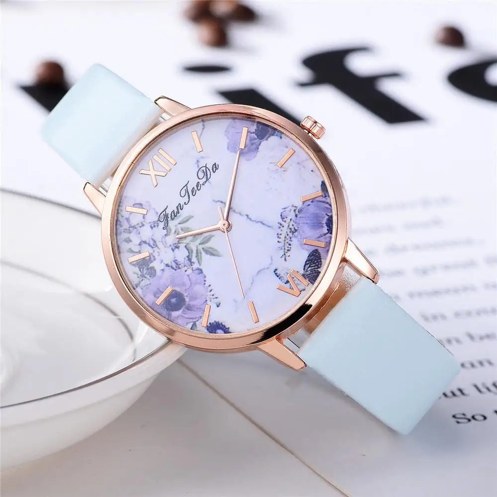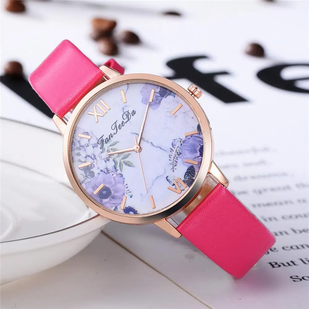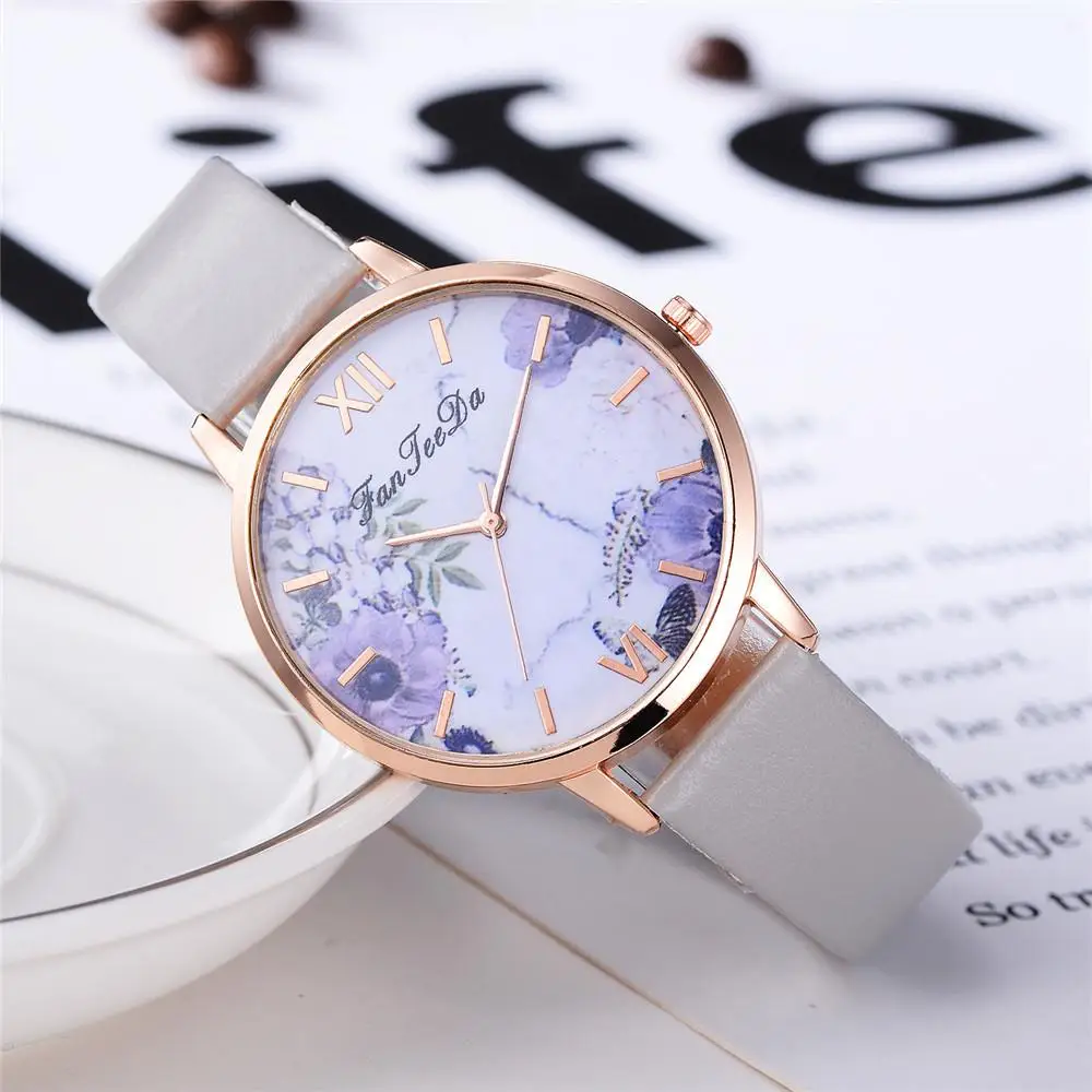 Новинка 2020, женские часы, модные повседневные женские наручные часы с цветком, зеленые винтажные кварцевые часы с кожаным ремешком, простые женские часы, подарки