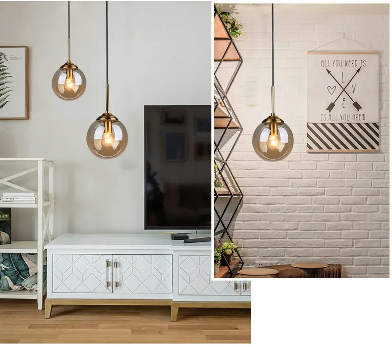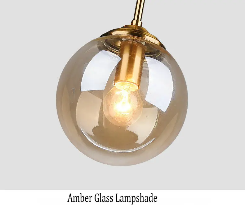 Подвесной светильник из прозрачного стекла янтарного цвета, дымчато-серого цвета, светодиодный светильник E27 для столовой, стола, кухни, спальни, прикроватный светильник