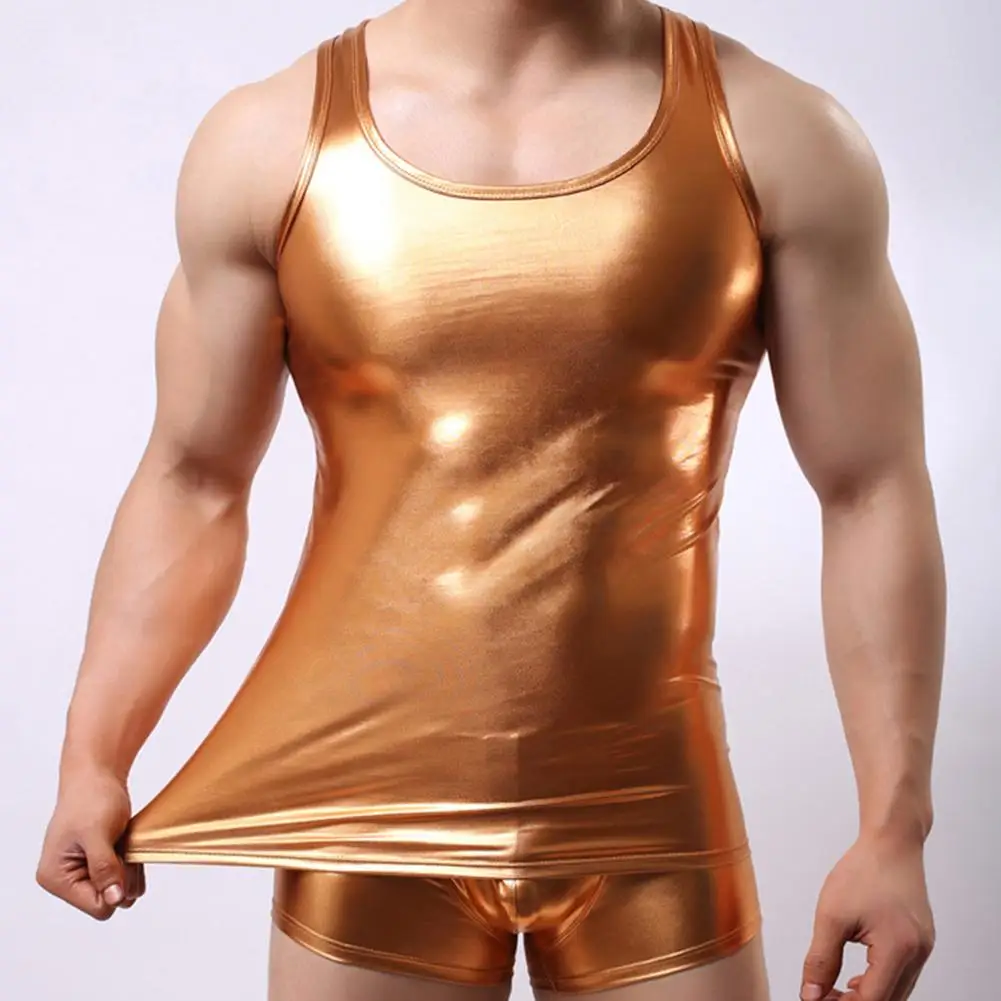 Майка мужская из искусственной кожи, пикантная однотонная Облегающая майка без рукавов, майка для спортзала в стиле панк, лето 2021