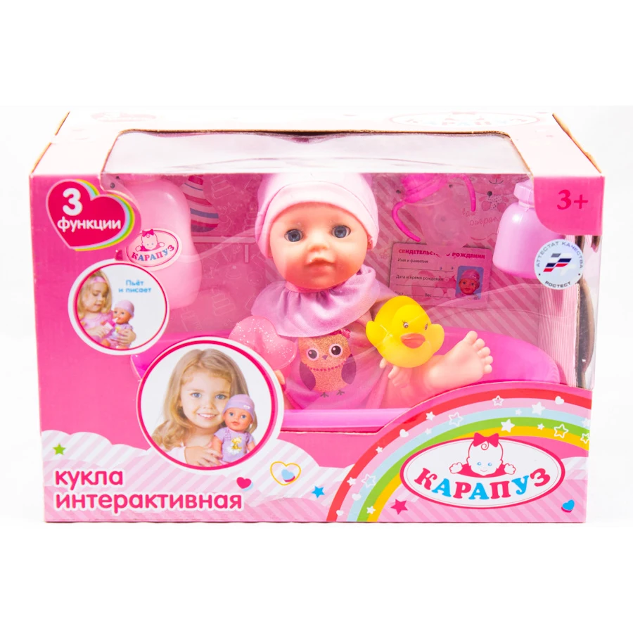 Кукла Пупс Карапуз 20 см 3 функции пьет и писает закрывает глазки в ванне с аксессуарами игрушка игра подарок сюрприз