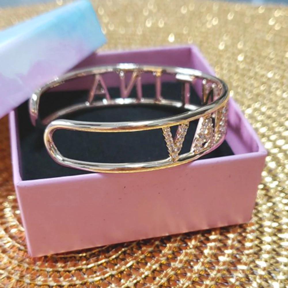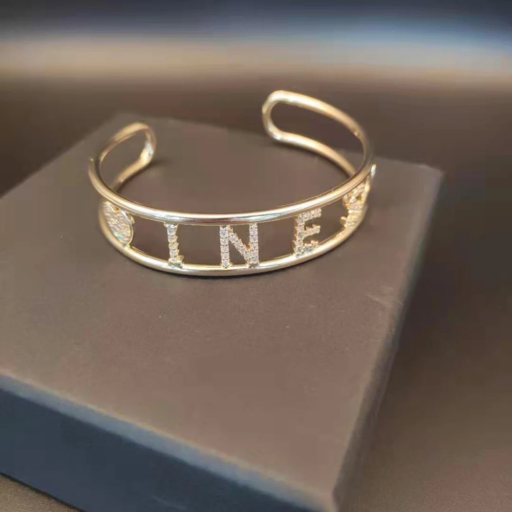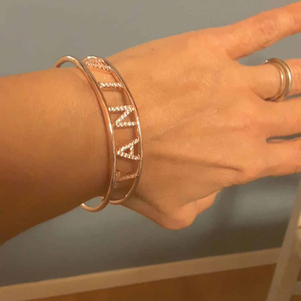 LUER индивидуальные буквы имя браслет/браслет на заказ Стразы/мужские и женские браслеты из нержавеющей стали хрустальные буквы подарок