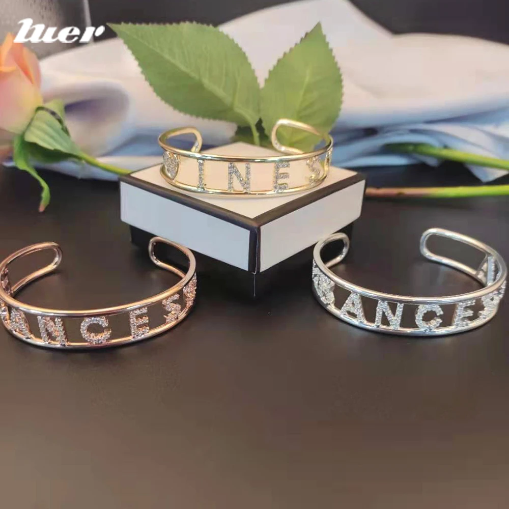 Браслет LUER с надписью и именем на заказ, мужские и женские браслеты из нержавеющей стали с надписью и кристаллами, подарок