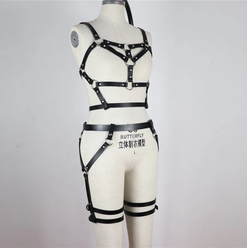 Женские кожаные ремни, 2 шт.компл., сексуальные, подвязка в готическом стиле, бондаж из ремней, от талии до бандаж для ног Фетиш клетки, ремни для тела