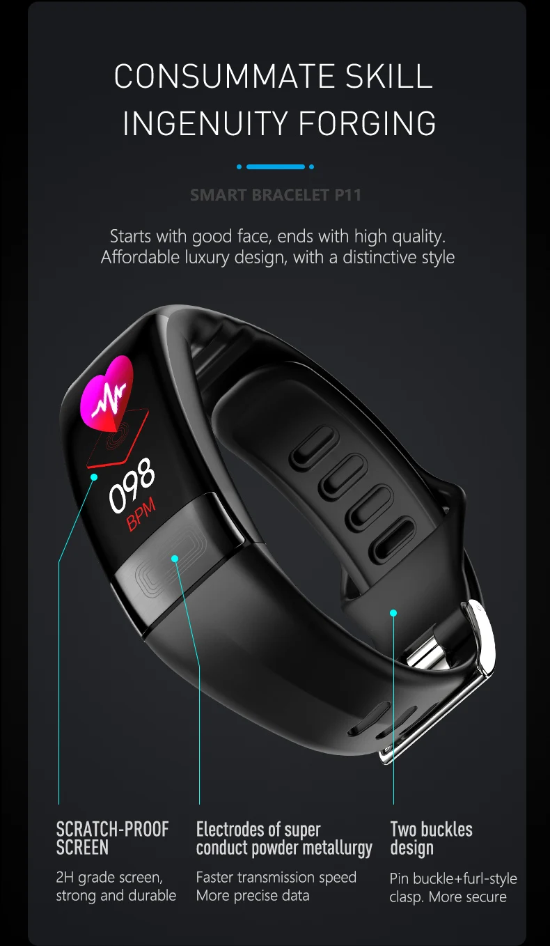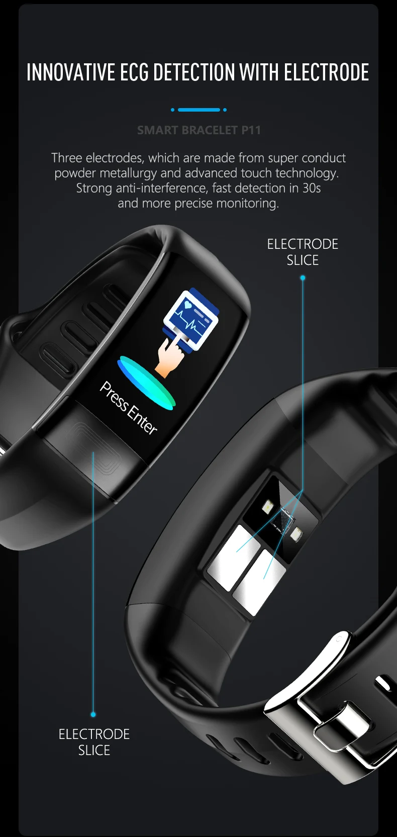 P11 ЭКГ + ФПГ смарт-Браслет фитнес-трекер для измерения сердечного ...