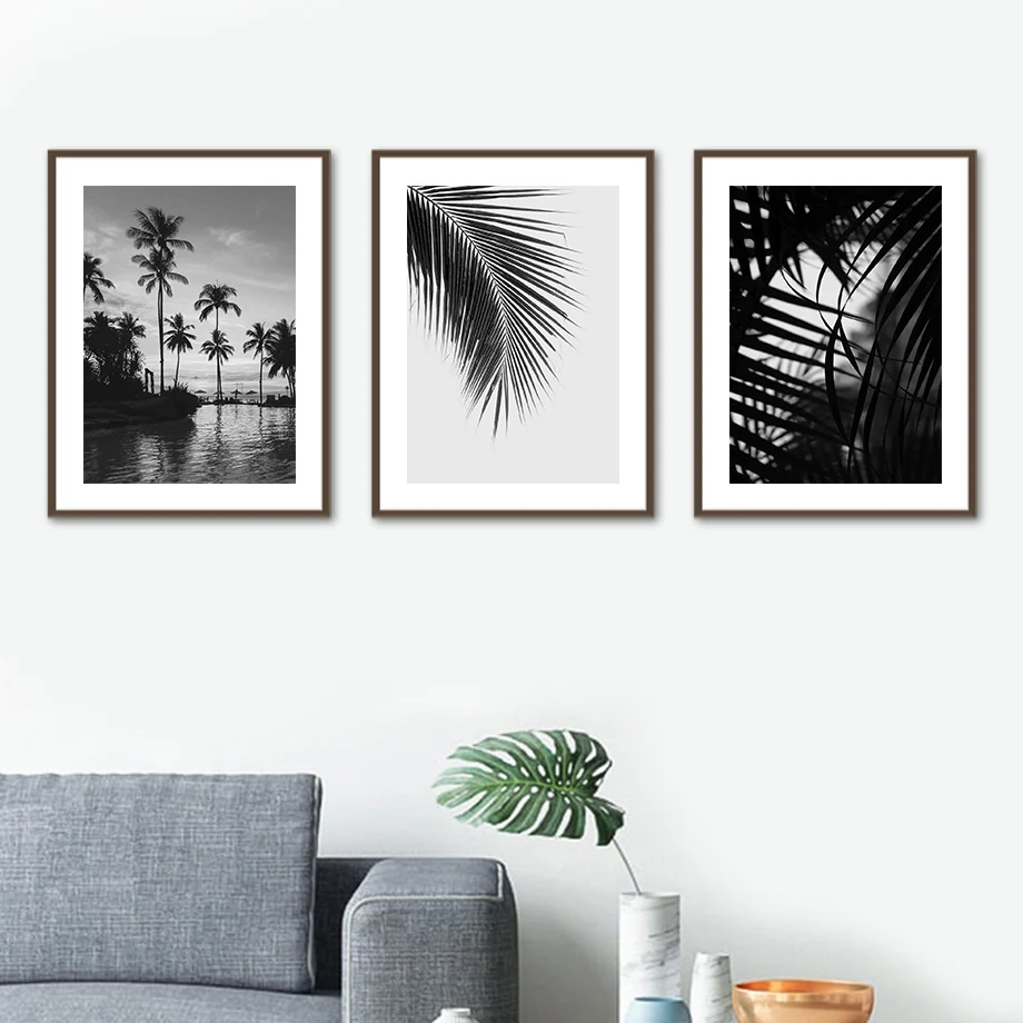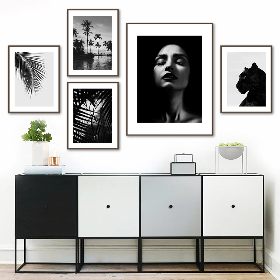 Черно-белая девушка кокосовое дерево Пальма листья настенная Картина на холсте скандинавские плакаты и принты настенные картины для декора гостиной