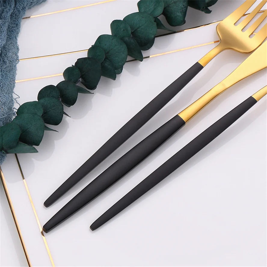 Цвета: черный, золотистый, набор столовых приборов вилка для путешествий Ножи ложка комплект Нержавеющаясталь набор посуды вечерние Кухня Золотой посуда Dropshopping