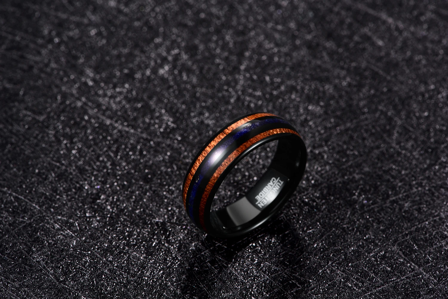 Новинка, мужское вольфрамовое кольцо 8 мм из дерева акации, лазурита, электрического черного цвета, свадебные украшения