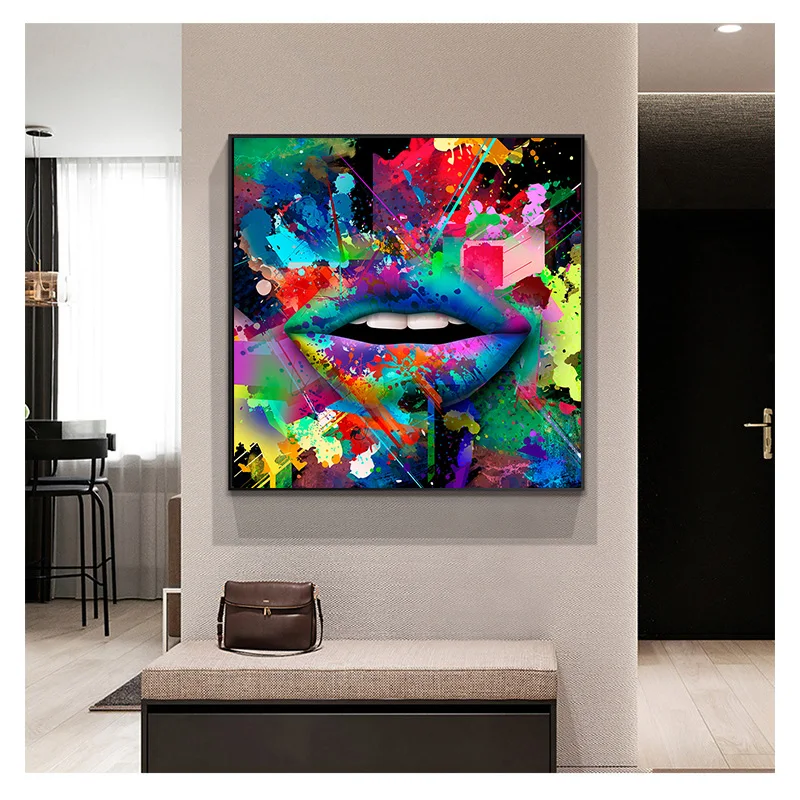 Абстрактная картина маслом с сексуальными губами на холсте, настенный художественный красочный постер и принты, современный большой размер, декоративная картина для спальни
