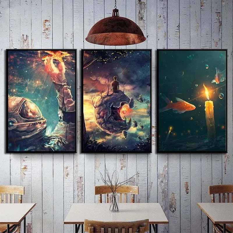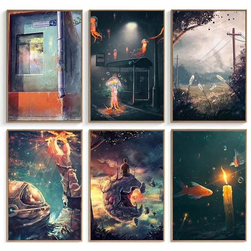 Абстрактный пейзаж, настенная фотография, Фэнтезийный ночник, глубоководный пейзаж, Картина на холсте, скандинавский Декор для гостиной и дома