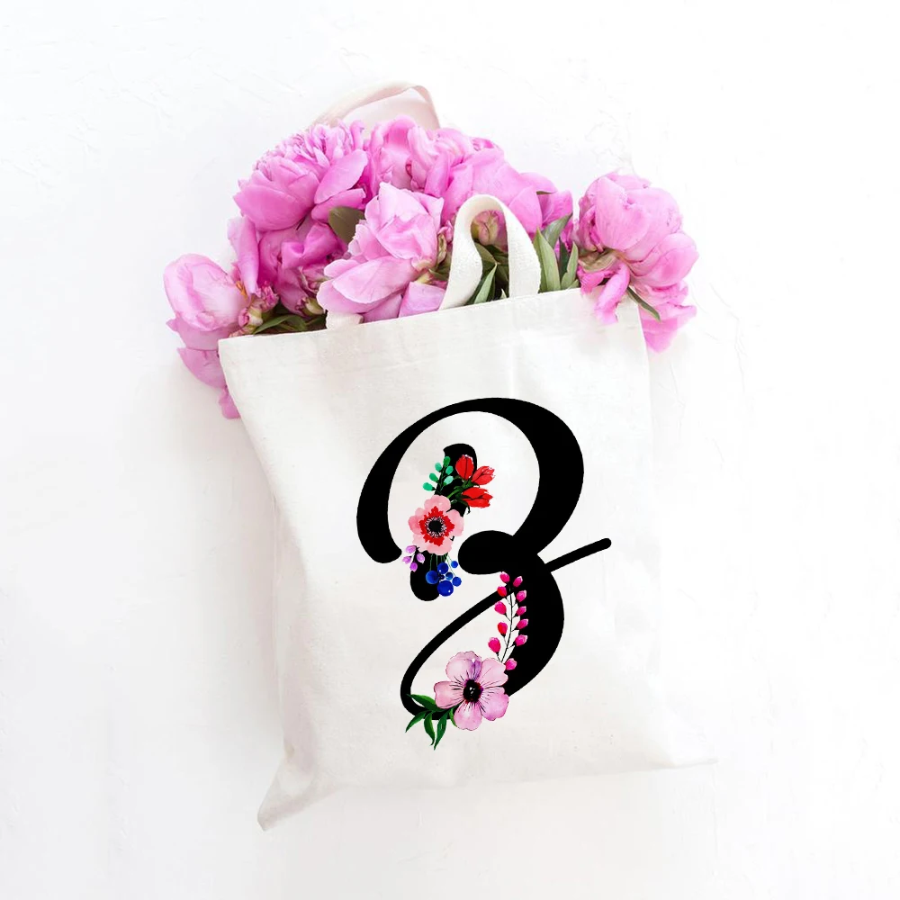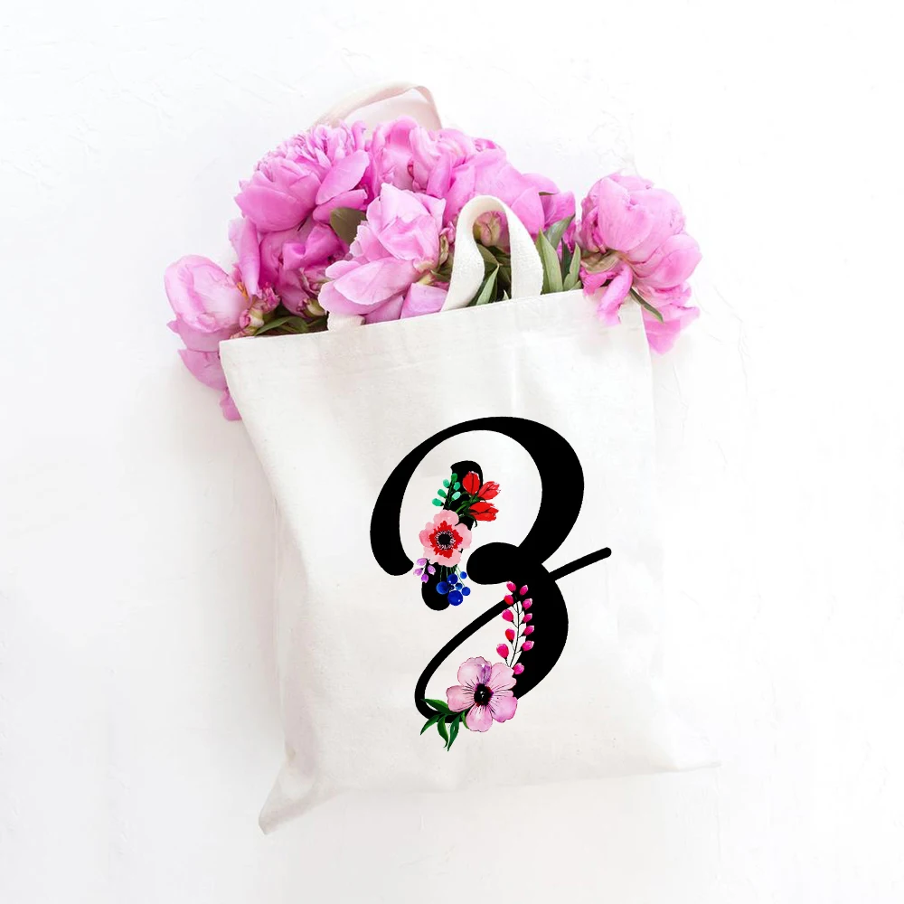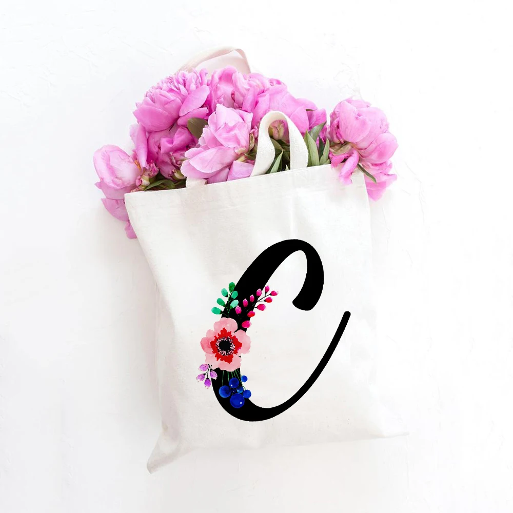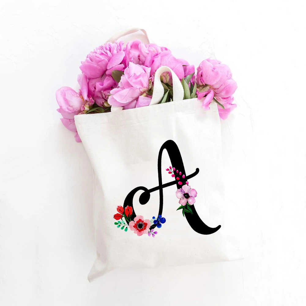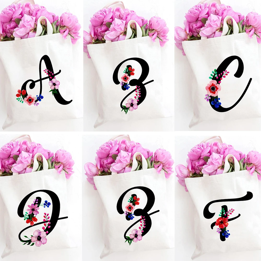 Холщовые сумки с цветочными буквами A, B, C, D, E, F, G, женская сумка для колледжа Ulzzang, Harajuku, модные Наплечные сумки, большая сумка-тоут