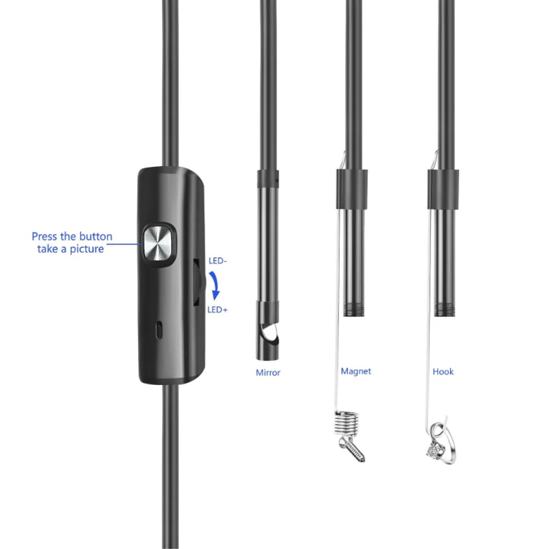 Спецификация: 1200P • Диаметр камеры: 8 мм • 2 мегапиксельная КМОП-матрица • Разрешение: 1600 × 1200 1280x720, 640x480, 320x240 • Угол обзора: 70 ° • Светодиодный светильник: 8 светодиодный s регулируемый • Фокусное расстояние: 4-10 см • Водонепроницаемость объектива: IP67 • Поддержка фотографий: Формат изображения: JPEG • Поддержка записи видео: Формат видео: AVI • Система поддержки: Android /Windows 480P: * Диаметр камеры: 7 мм * Камера пикселей: 0,3 мегапикселя * Разрешение: 640*480 /30 кадров * Угол Линзы: 67 градусов * 6 Регулируемый белый светодиодный светильник * Изделие с коротким расстоянием (SF) расстояние обзора: 3 см ~ 10 см * Водонепроницаемый объектив: IP67 * Рабочая температура: -10-80 градусов * Рабочая платформа: android/windows2000/windows xp/vista/windows7/windows8/windows10/