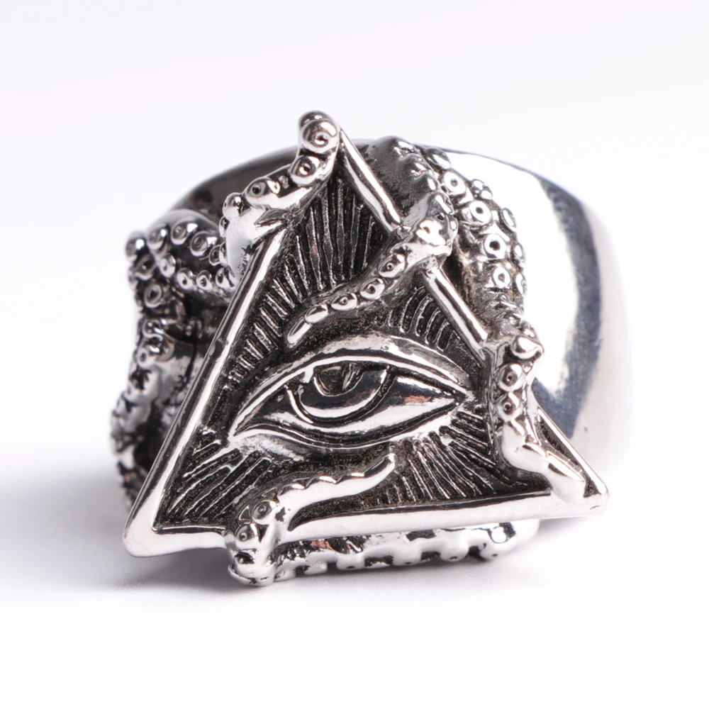 Кольцо с треугольным глазом мужское, винтажное украшение в виде осьминога, кольцо для вечеринки в стиле панк для вечеринок, рок, байкер, аксессуары, бижутерия