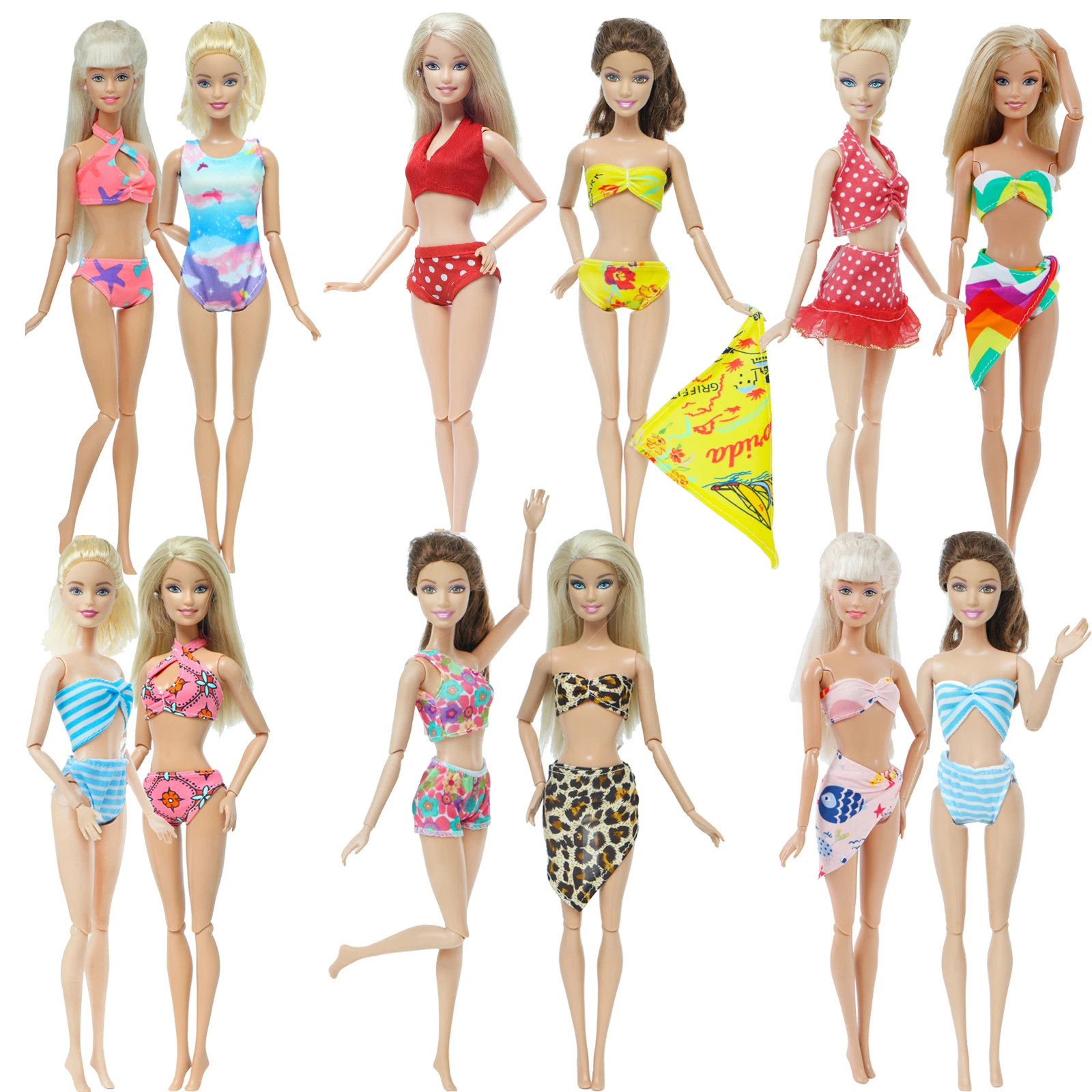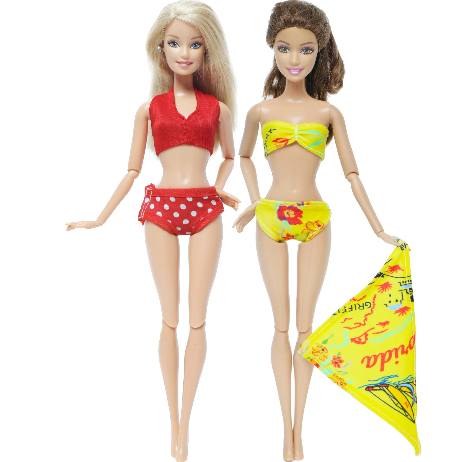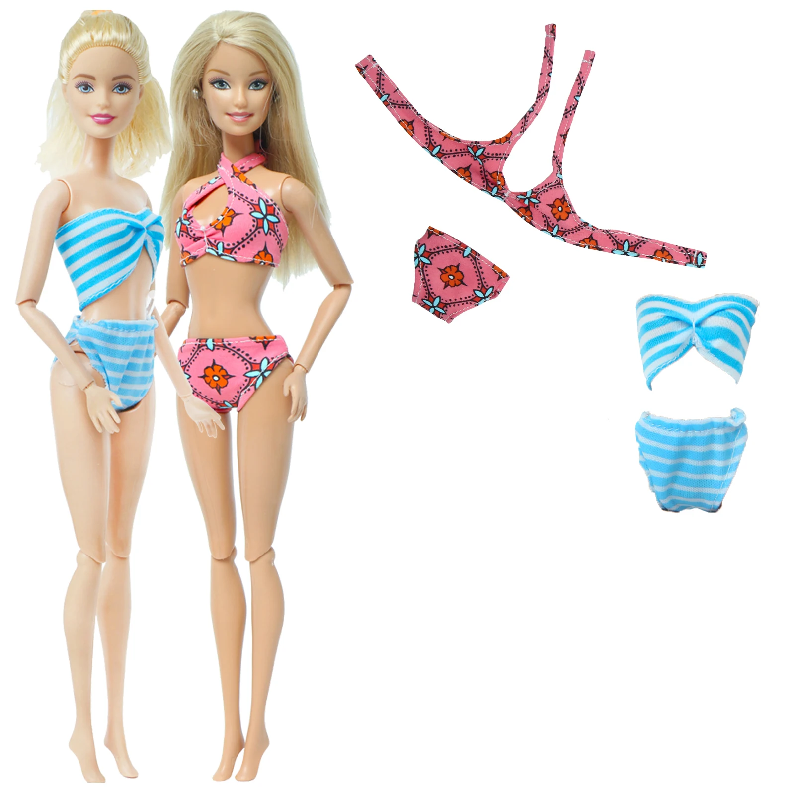 2 компл.лот высокое качество кукла в купальнике цветок полосатый бикини Близнецы летняя пляжная одежда Одежда для куклы Барби аксессуары для детей игрушки