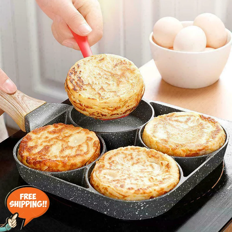 4 отверстия, жареное яйцо, сковорода, антипригарная ветчина, блинная машина, деревянная ручка, подходит для газовой плиты и индукционной плиты