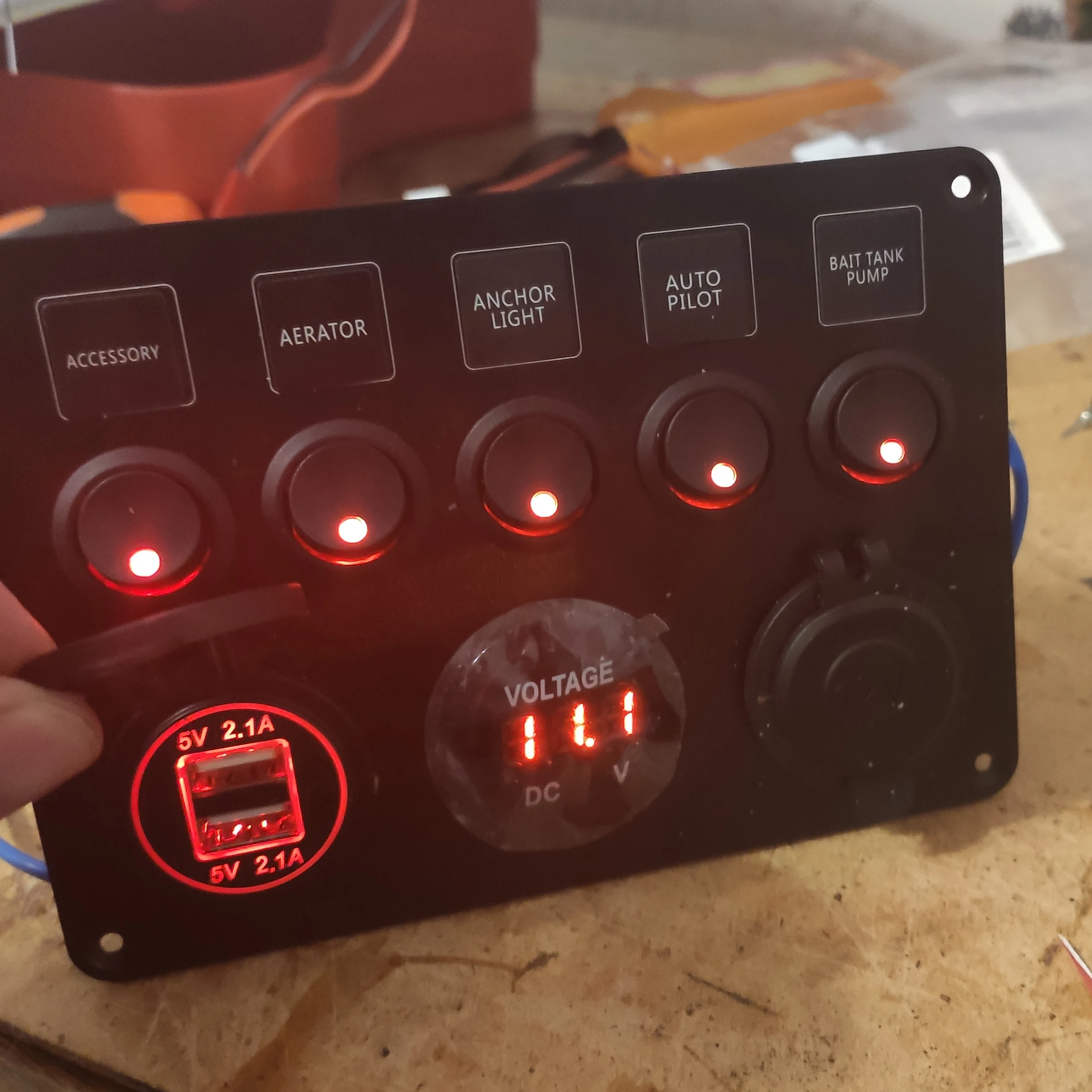 Многофункциональная Панель; Двойная розетка USB + Вольтметр + розетка 12V + 5 тумблеров 5 светодиодный тумблеров имеют защиту от перегрузки, перегрузки по току и короткого замыкания. Панель переключателей подходит для универсального автомобиля, лодки, грузовика