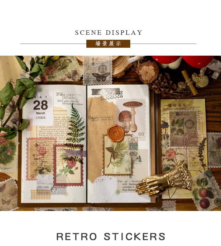 60 шт.компл. наклейка с ретро-штампом, искусственный материал, деко...