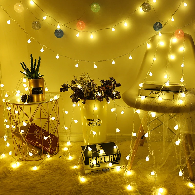 Светодиодная гирлянда с питанием от USBаккумулятора, Рождественская маленькая шариковая лампа-занавеска для помещений и улицы, украшение для свадьбы, дня рождения