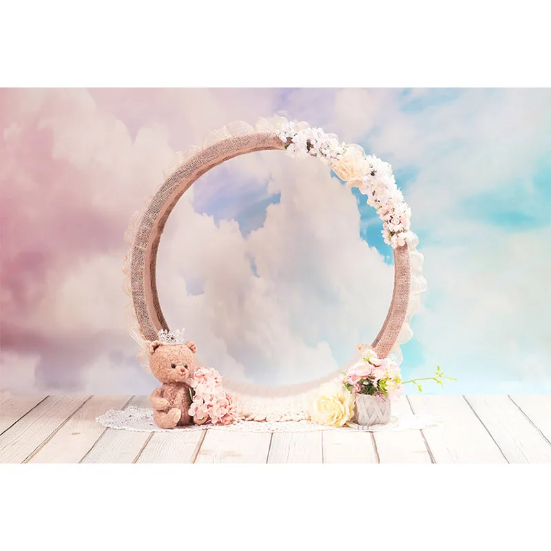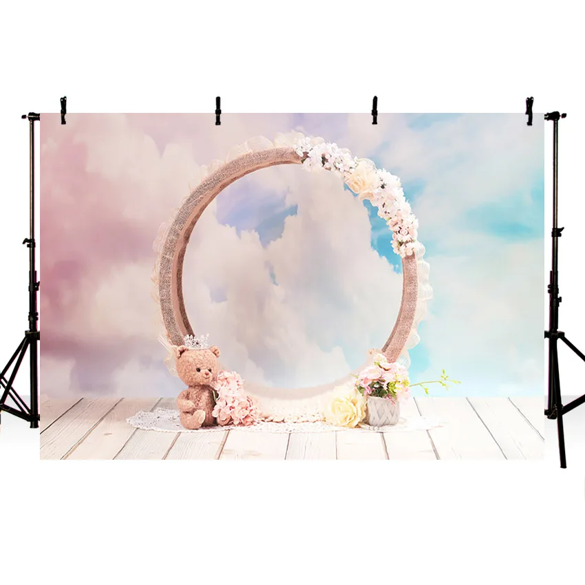 Avezano день рождения ребенок душ фон цветные облака цветы Медведь Деревянный пол фотография Фон фотосессия фотозона Декор реквизит