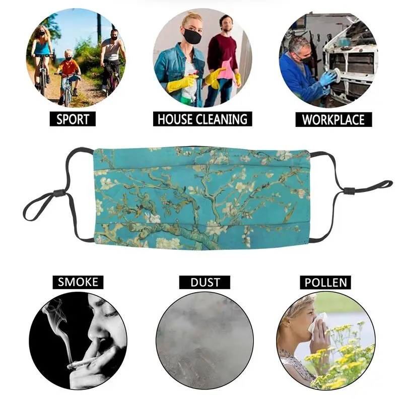 Дышащая Маска с цветком миндаля, маска Винсента Ван Гога, защитный респиратор для рисования цветов, многоразовая маска для рта