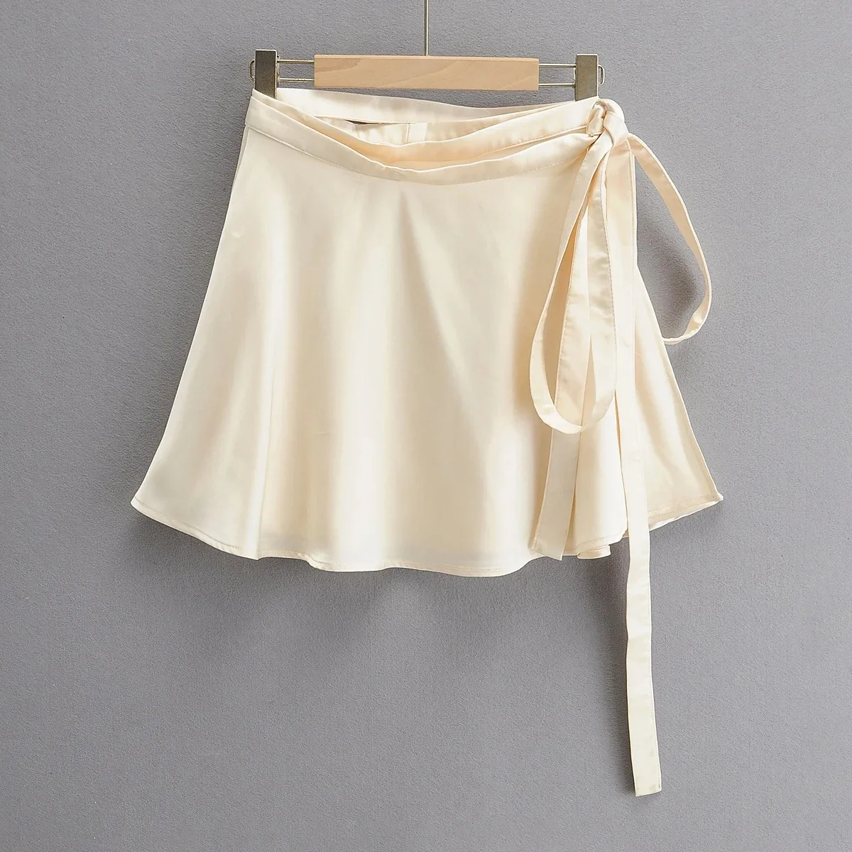 Женская атласная юбка, Слитная мини-юбка с высокой талией, летняя, черная, белая, элегантная, со шнуровкой, теннисная, плиссированная, Y2k, 2021