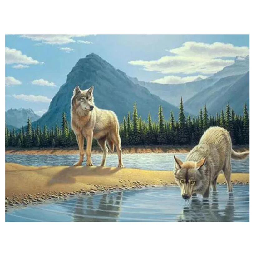 Алмазная вышивка два волка с квадратными животными, вышивка крестиком, стразы, искусство, хобби, подарок, украшение для стен XN1014