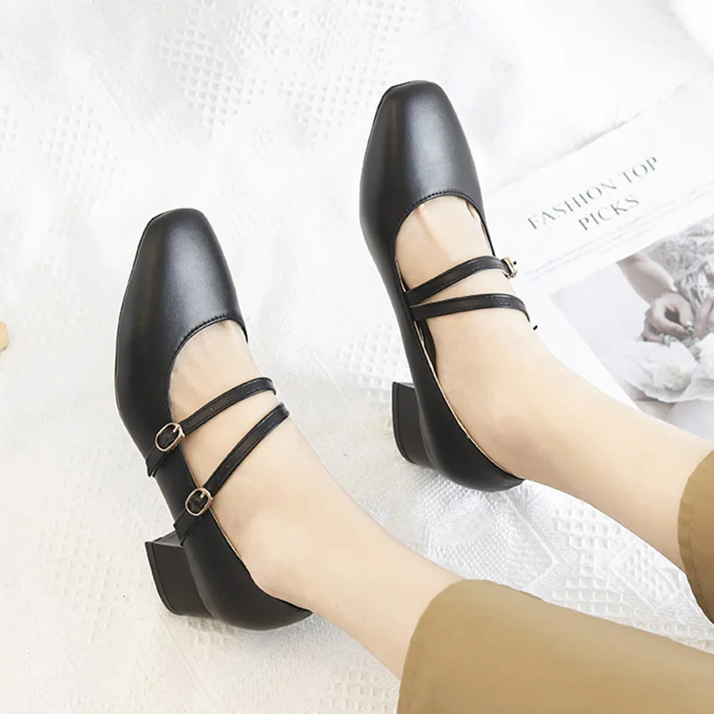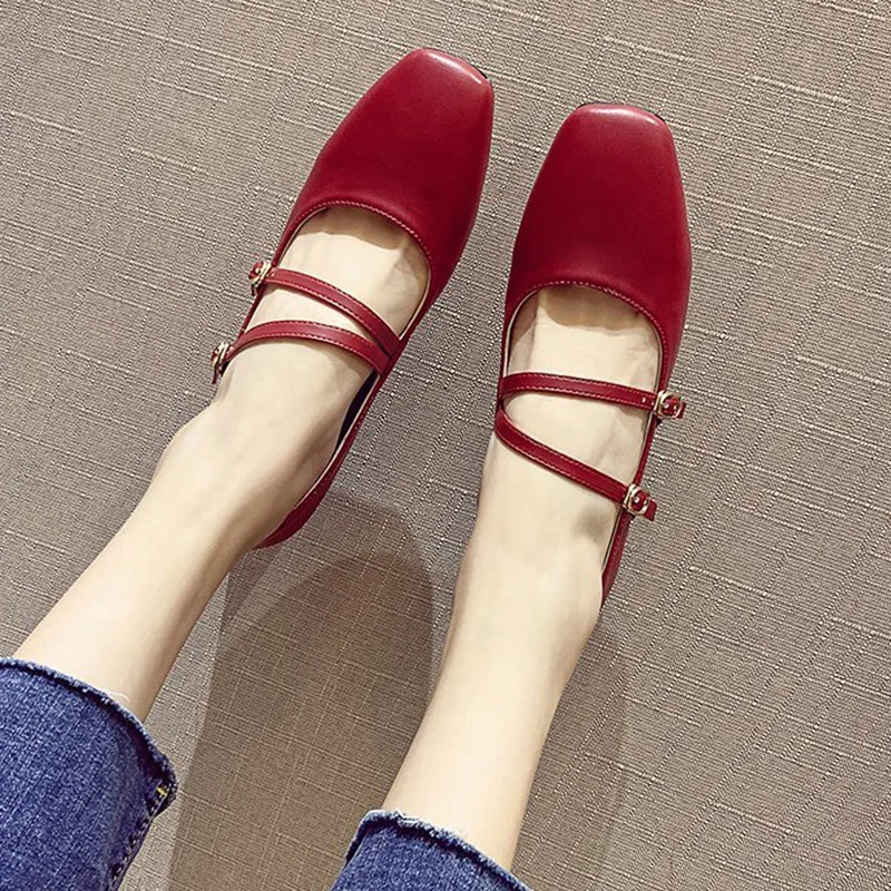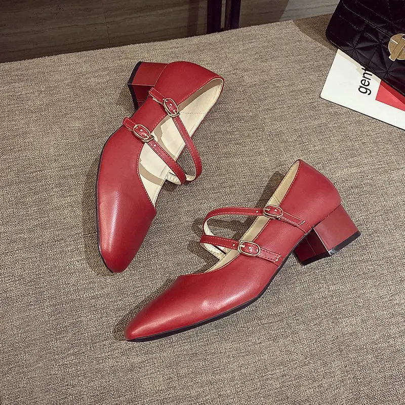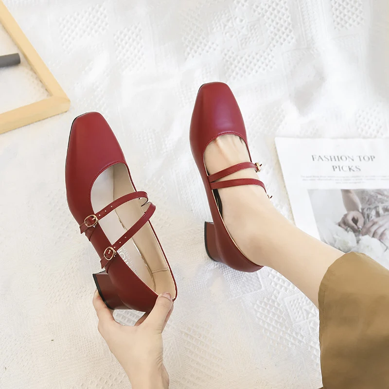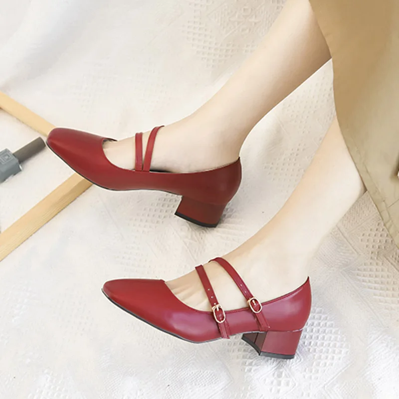 Женские туфли мэри джейн на среднем каблуке, классические туфли-лодочки с квадратным носком, Офисная красная обувь, большие размеры 41 42, 8833L
