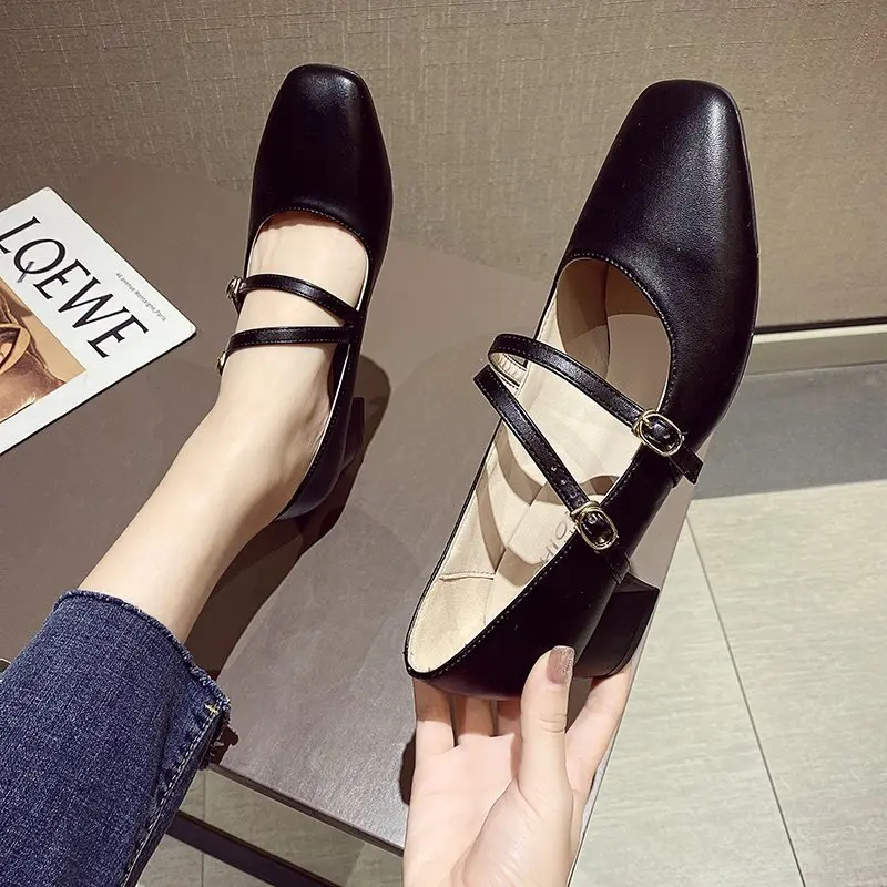 Туфли женские весенние на плоской подошве, с ремешком на щиколотке