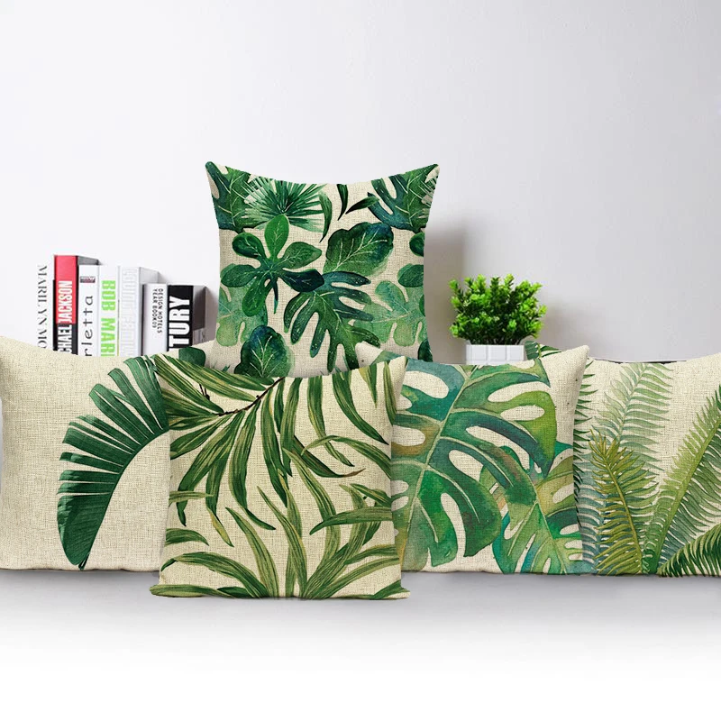 Декоративные подушки из полиэстера, тропические зеленые растения, л...