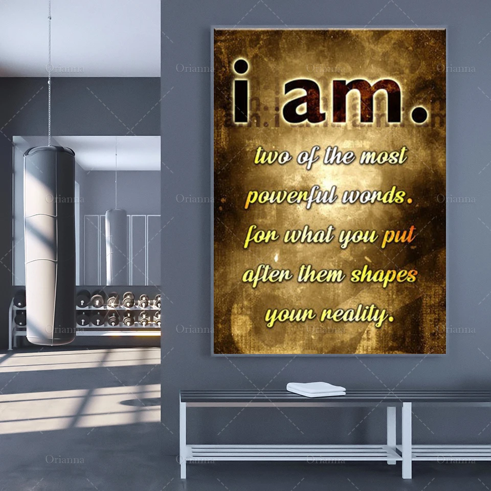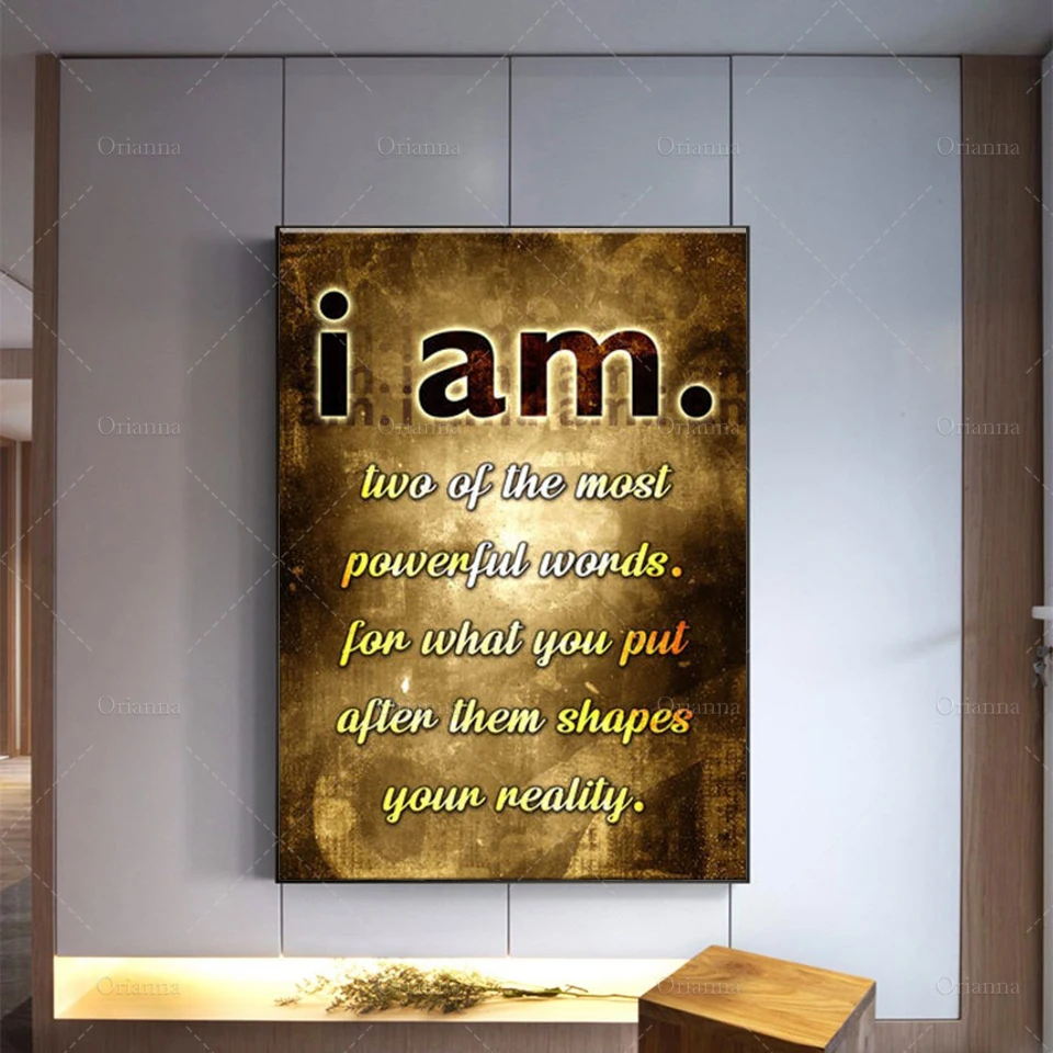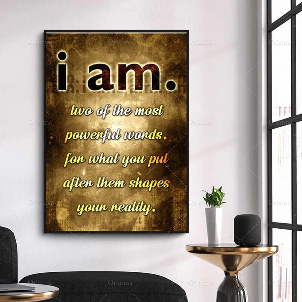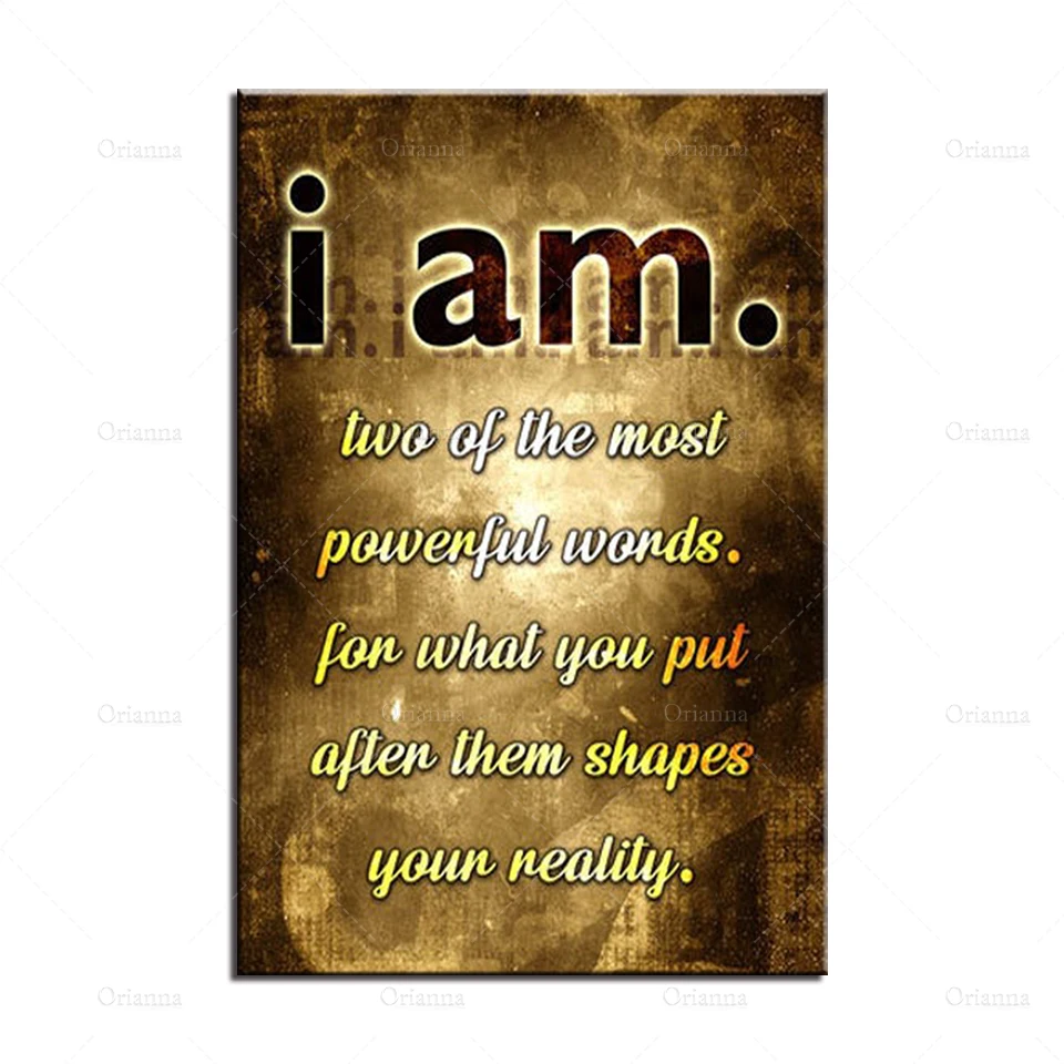 Я два из самых мощных слов, холст, настенное искусство, знак благодарности, Абрахам Хикс, закон аттракционов, Современный домашний декор