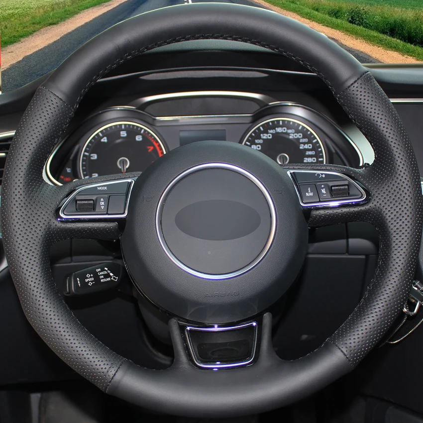 Нескользящая черная искусственная кожа для самостоятельной сборки, чехол рулевого колеса автомобиля, для Audi A1, 8X, A3, 8 В, Sportback, A4, B8, Avant, A5, 8T, A6, C7, A7, G8, A8