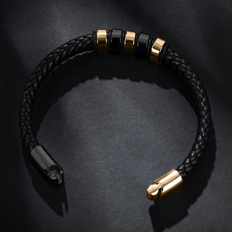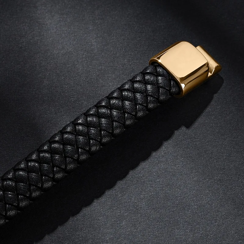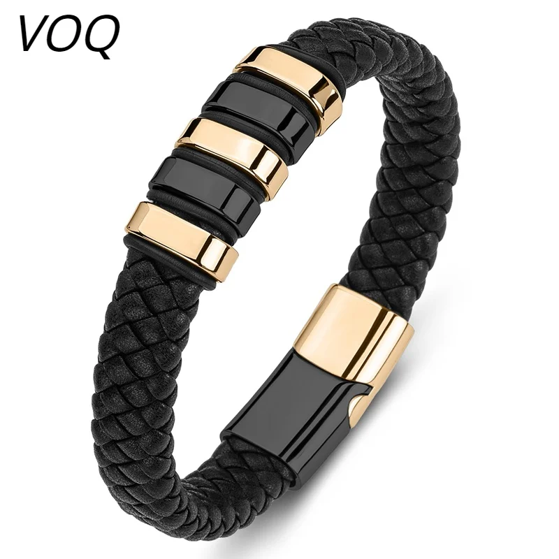 VOQ материал из натуральной кожи с отделкой из натуральной кожи браслет прохладный черного и золотого цвета из нержавеющей стали Магнитная застежка браслеты Bangels для мужчин ювелирные изделия