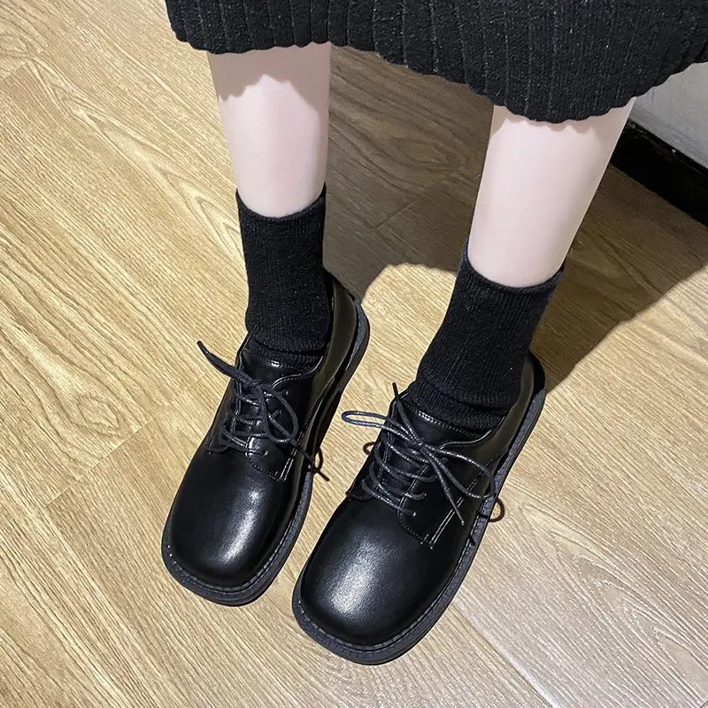Женские туфли-оксфорды на шнуровке, черные повседневные туфли с квадратным носком, модель 8872C на весну-осень, 2021