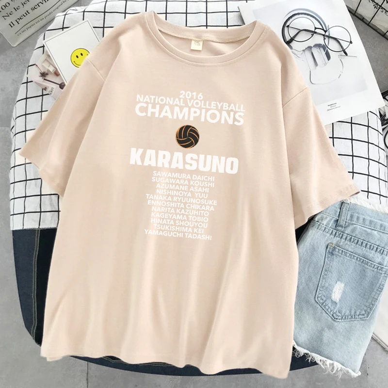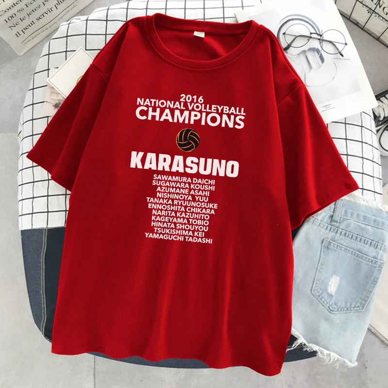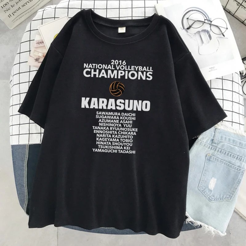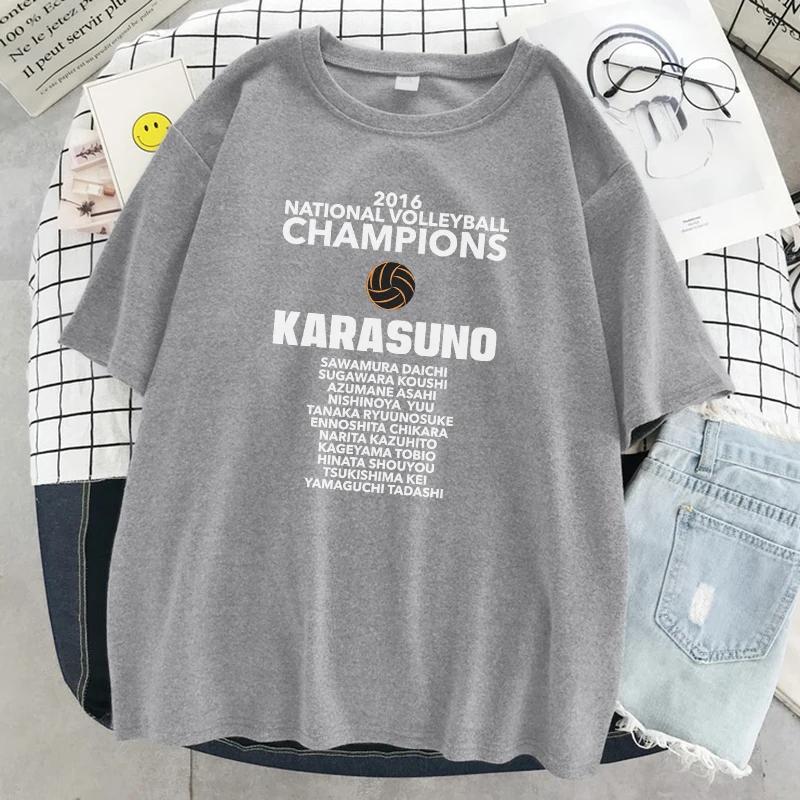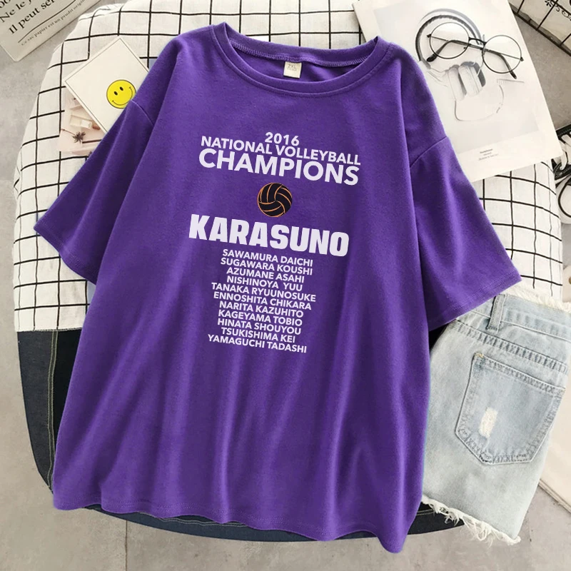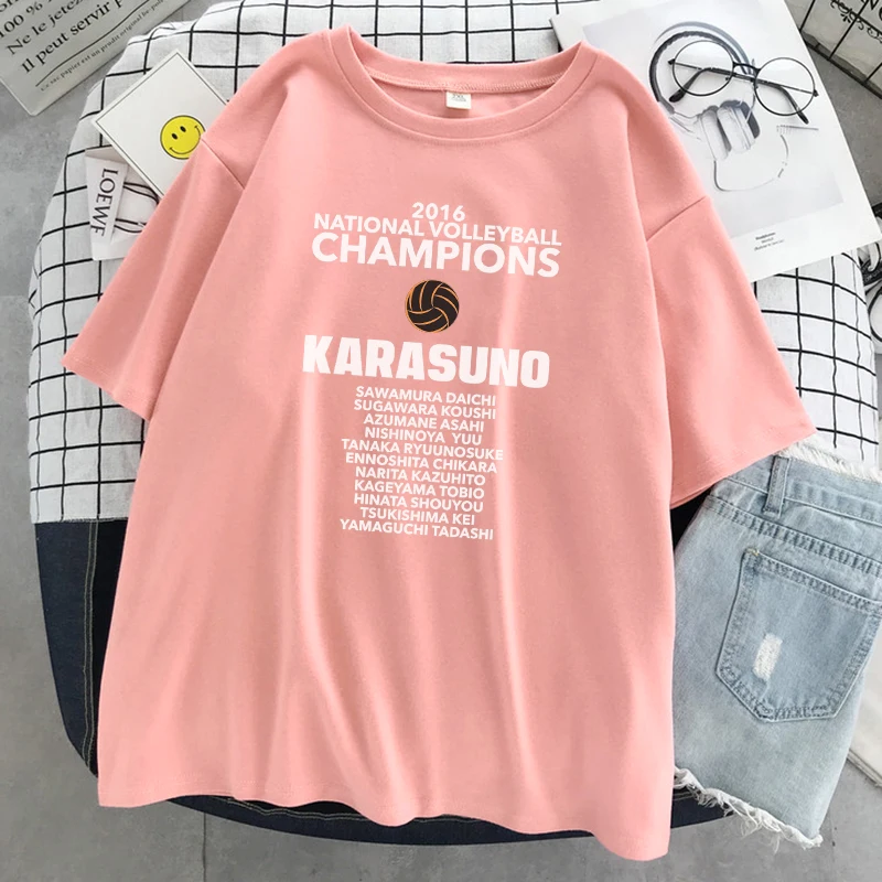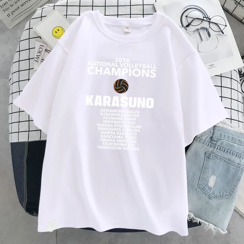 Футболки с принтом в стиле аниме Haikyuu Karasuno Harajuku, женская мягкая дышащая футболка, летняя качественная футболка, повседневная свободная футболка, женская