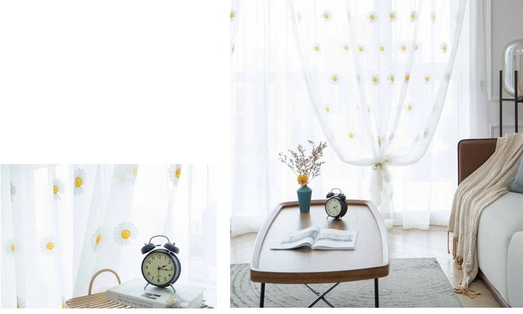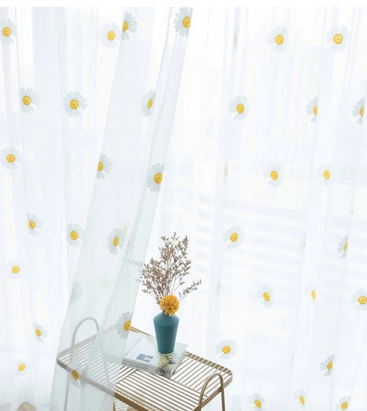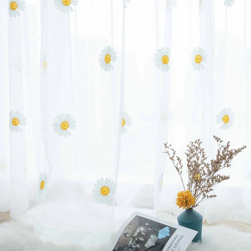 Тюлевые шторы с вышивкой желтые маргаритки для гостиной, белые тюлевые Шторы для кухни, окна, балкона, украшение для штор Z