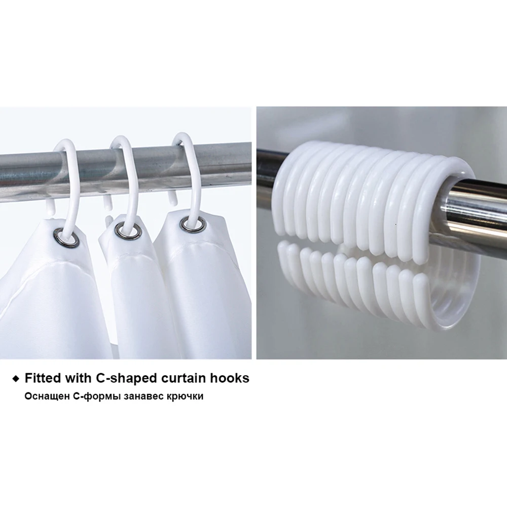 Занавеска для ванной, водонепроницаемая, из полиэстера, с крючками