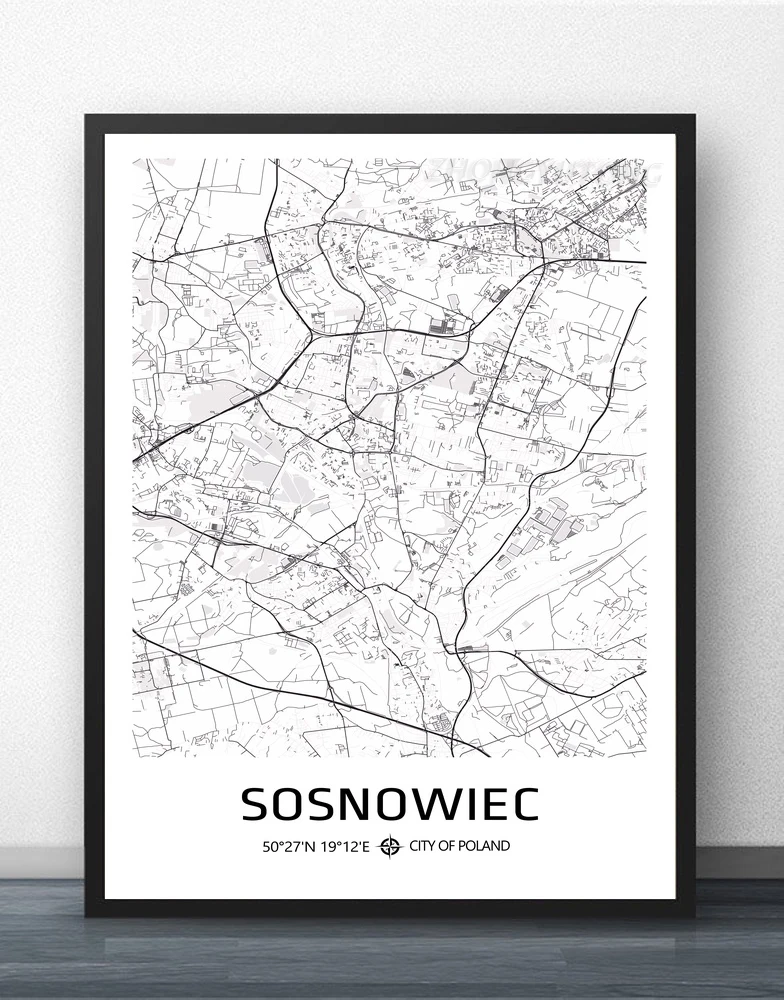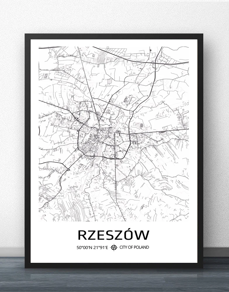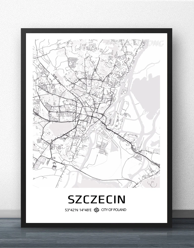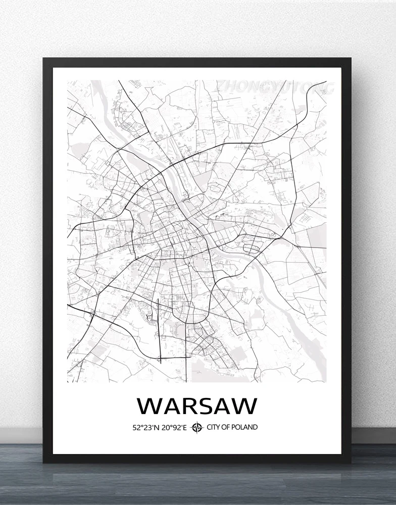 Карта на заказ, плакат, Карта города Польши, черно-белая печать, ри...
