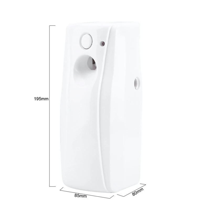 Особенности:Номер модели: Автоматический Дозатор ароматовАвтоматически распылите аромат в комнату, чтобы очистить воздух и удалить вонючий запах.Настенный стиль, подходит для домашней ванной комнаты, общественного туалета, отеля, ресторана и многого другого.С мгновенной кнопкой распыления (Тестовая кнопка), она позволяет распылить для быстрого спроса.Описание:Этот автоматический аэрозольный диспенсер изготовлен из высококачественного АБС-материала с современным и простым дизайном. Он используется для автоматического распыления аромата в соответствии с вашими настройками. Не нужно распылять вручную, более удобно и экономит труда. Встроенный светильник может работать днем или ночью для ваших нужд.Характеристики:Состояние на 100% абсолютно новыйМатериал: АБС-пластикЦвет: белыйИсточник питания: 2 батарейки типа АА (не входят в комплект)Интервал времени: 7,5/15 / 30 минут (регулируемый)Режим работы: 24 часа/день/ночьСовместимый объем аэрозоля: 300 млСовместимый размер аэрозоля (H x Diam.): прибл. 14x6,5 см/5,51 x 2.56inРазмер: прибл. 19,5x8,5x8 см/7,68x3,35 x 3.15inВес: прибл. 295 гПримечание:1. Пожалуйста, не смотрите на распыляющее сопло, особенно на глаза.2. Как только аромат попадет в ваши глаза, промойте глаза большим количеством чистой воды около 15 минут.Посылка включает в себя:1 * аэрозоль диспенсерТолько вышеуказанная посылка, другие товары не включены.Примечание: светильник и различные дисплеи могут привести к тому, что цвет товара на картинке немного отличается от реального. Допускается погрешность в измерениях +/- 1-3 см.