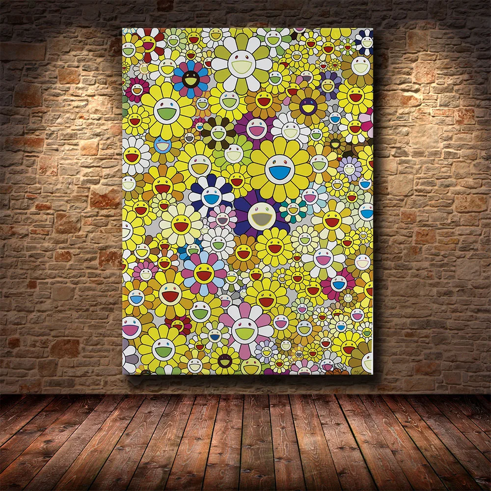 Художественное творчество, желтое улыбающееся лицо, Подсолнухи, Картина на холсте, постеры и принты, Настенная картина для гостиной, домашний декор