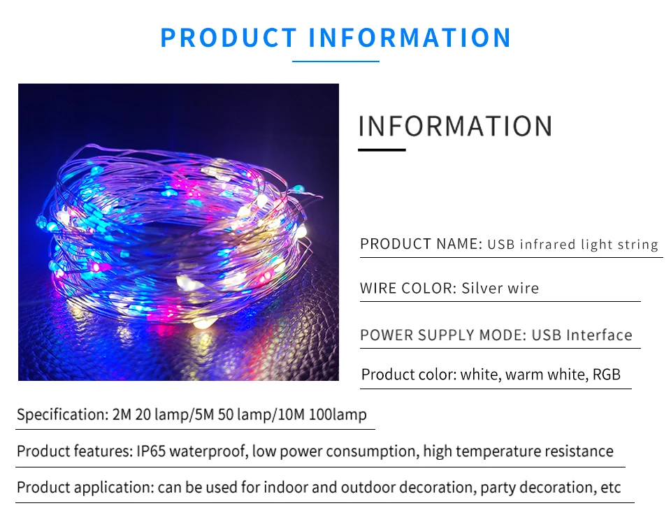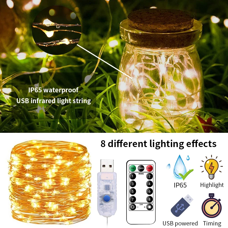 2 м, 5 м, 10 м, 8 режимов дистанционного управления, с регулируемой яркостью, USB питание, светодиодный гирлянда, сказочные гирлянды, декоративная Рождественская уличная садовая лампа