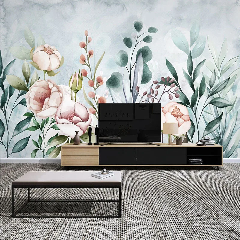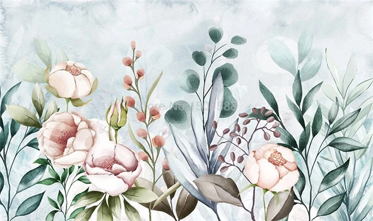 Настенные 3D-обои на заказ, пасторальные Настенные обои с цветами, акварелью, растениями в современном стиле, для гостиной, фона под Телевизор