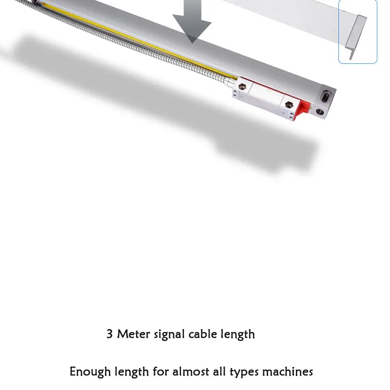 1. Длина путешествия (измерения): 0-420 мм 2. Общая (общая) Длина: длина путешествия + 120 мм 3. Вилка: DB9 4. Разрешение: 0,005 мм 5. Входное напряжение: 5 В 6. Шаг решетки: 0,02 мм (50 ЛП/мин) 7. Длина кабеля: 3 метра 8. Размер нормальной шкалы: 20*28 мм 9. Точность: ± 3/5/8 мкм 10. Выходной сигнал: TTL