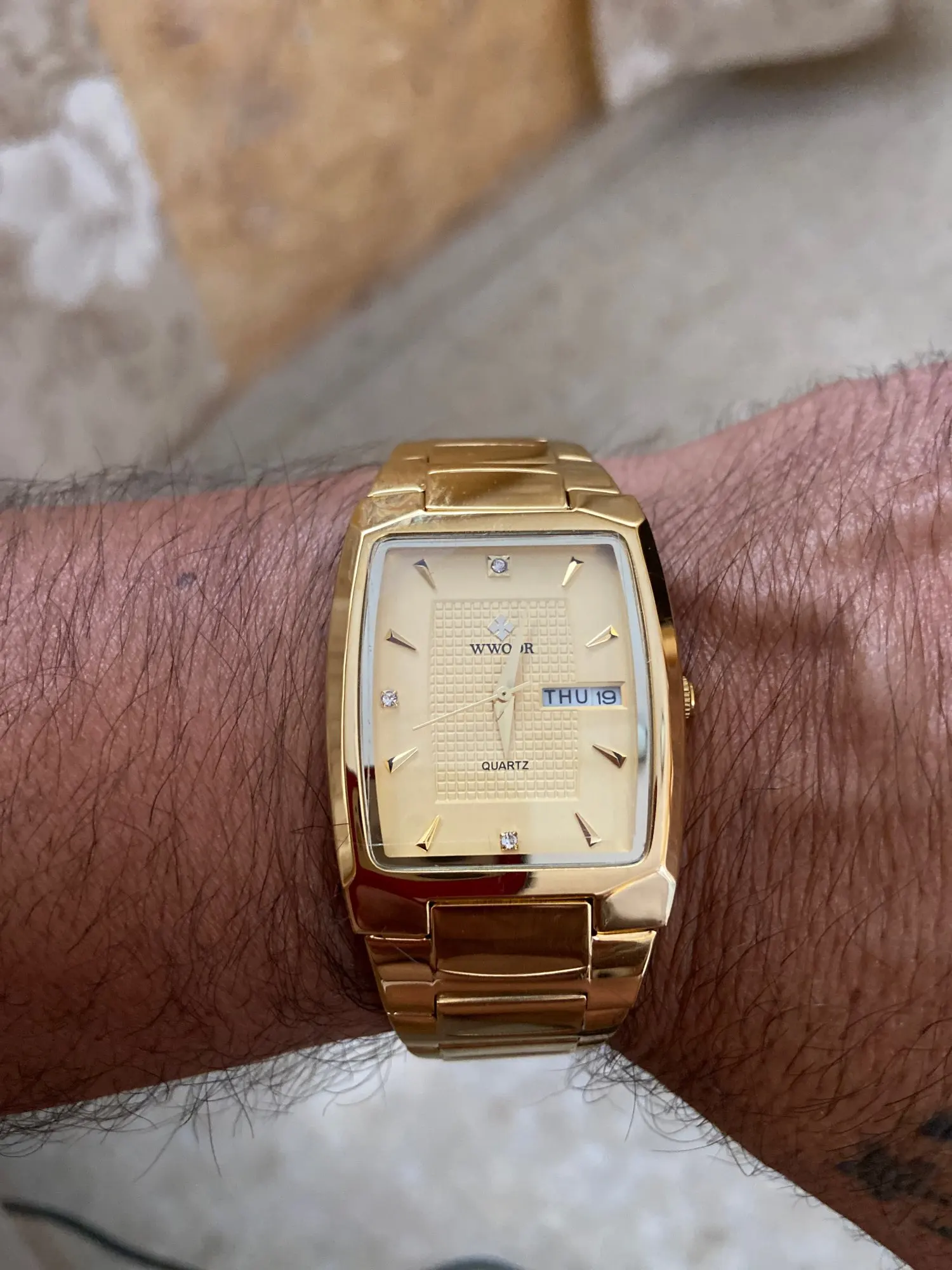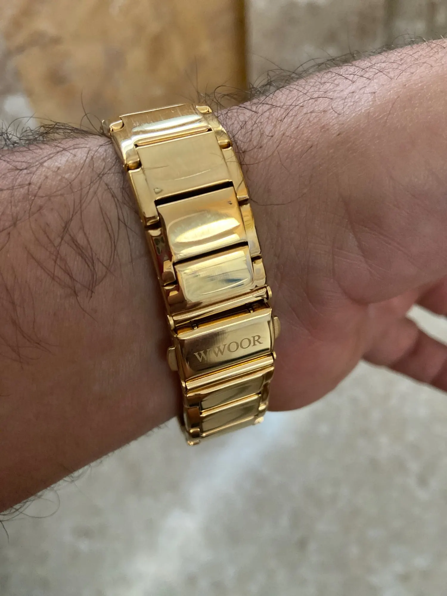 Мужские кварцевые часы WWOOR, квадратные часы из нержавеющей стали, с автоматическим отображением даты, даты, цвета золото, 2021