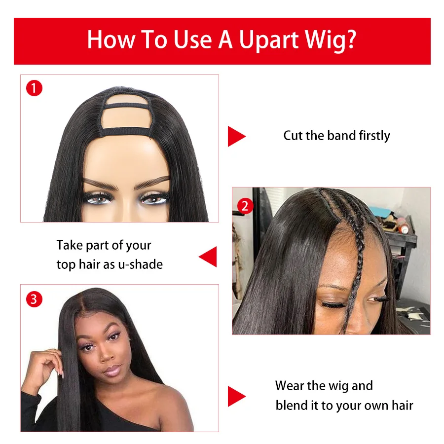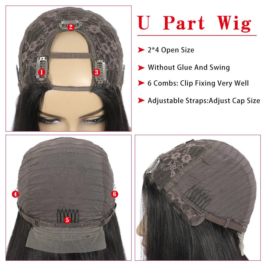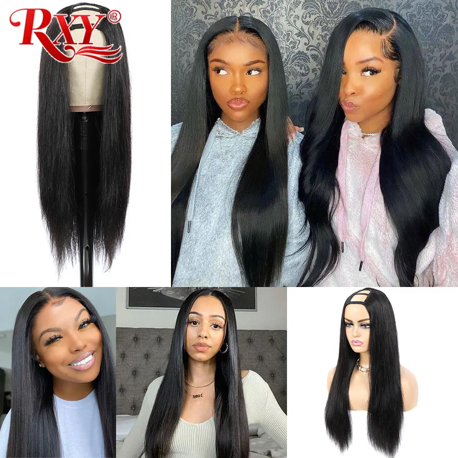 Парик RXY U-образной формы для чернокожих женщин, парики без клея, прямые волосы Remy, дешёвые, машинная работа, 100% натуральные волосы