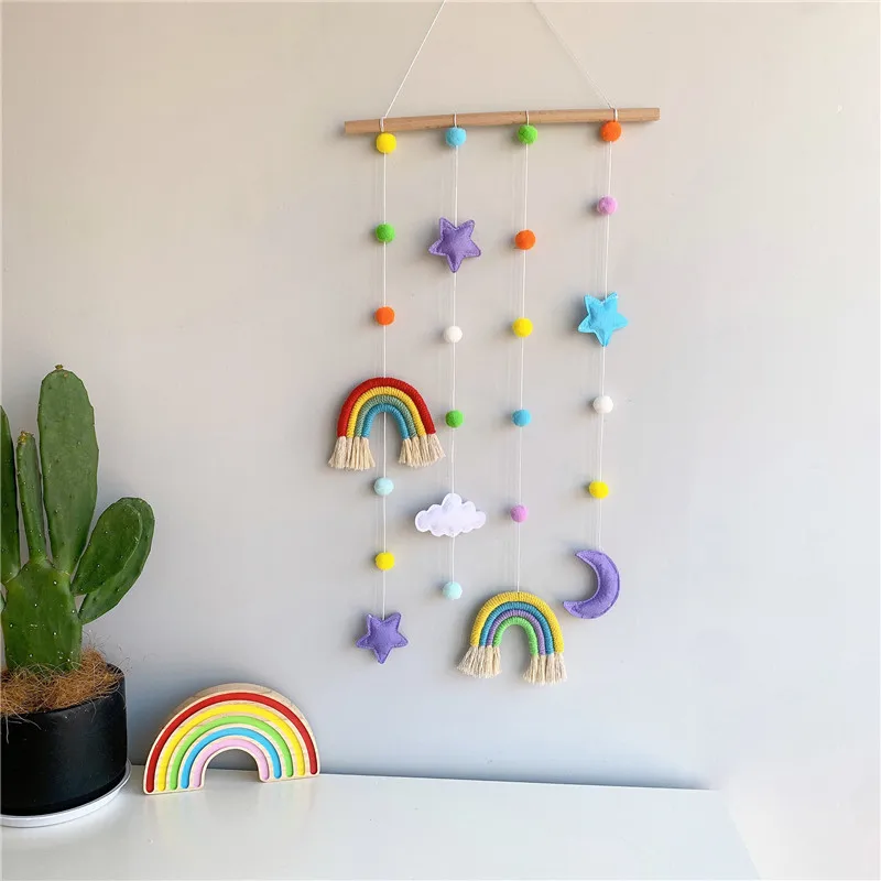 Скандинавский стиль, милый фетровый Плетеный Радужный настенный орнамент, украшение для детской комнаты, реквизит для фотосъемки, деревянная палочка, подвеска с кисточкой