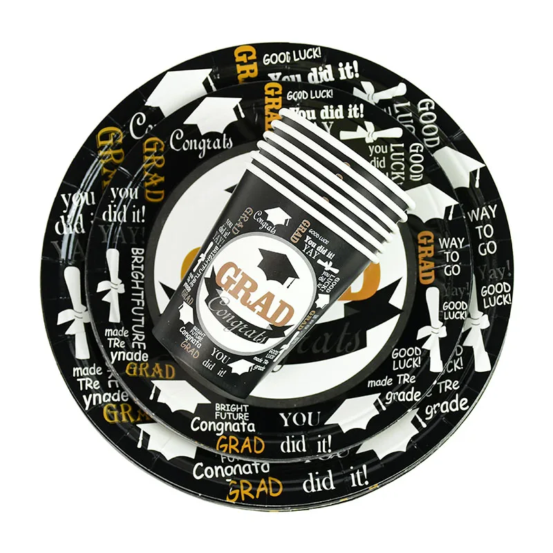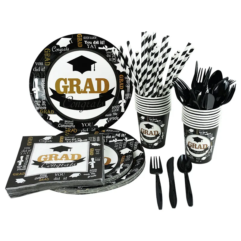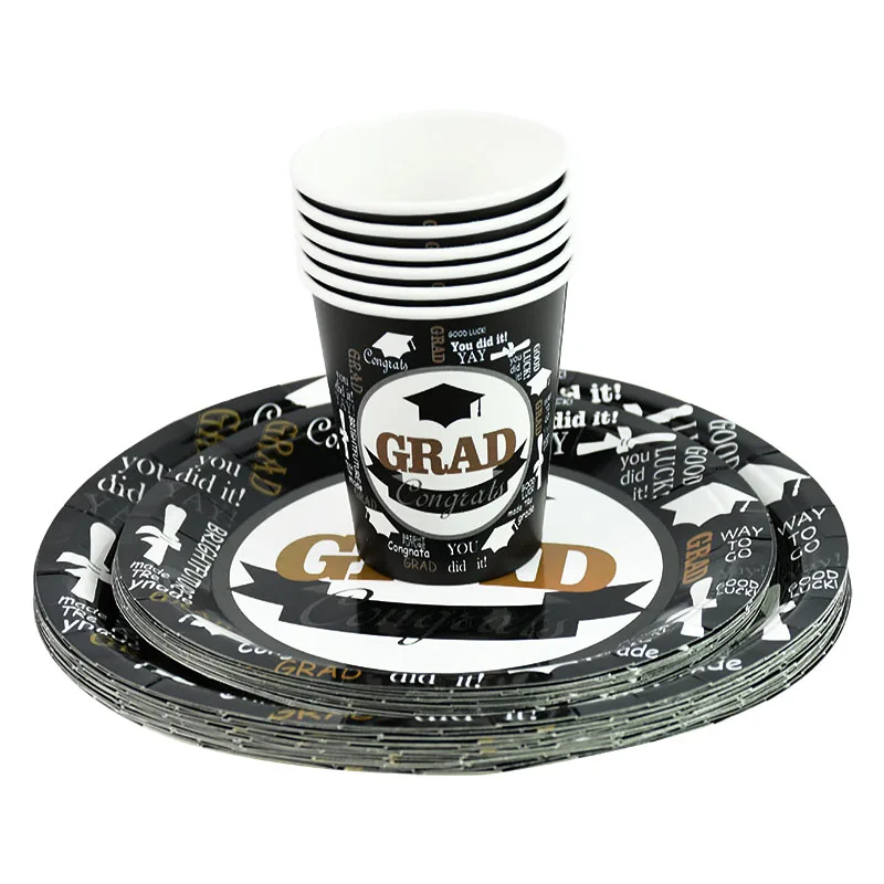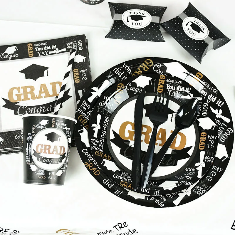 Выпускной вечерние одноразовая посуда 2021 Поздравляю Град Бумага Салфетка под тарелку кружку поздравления Выпускной украшения поставки 8