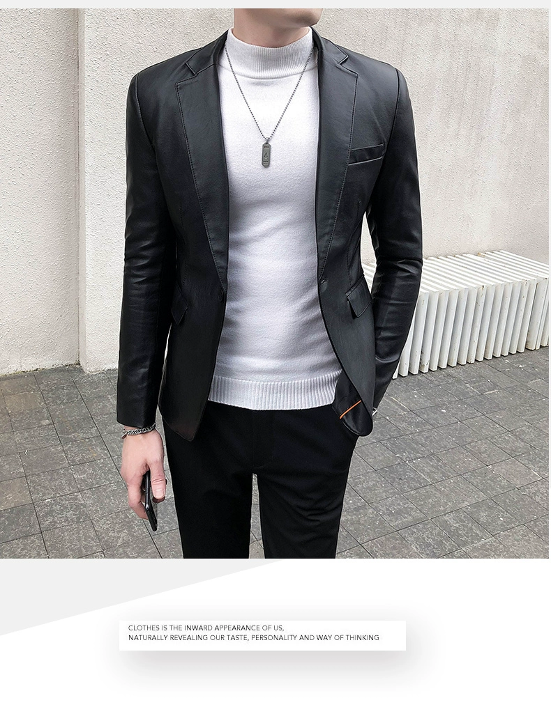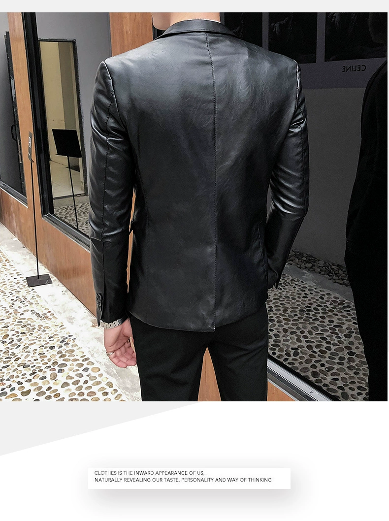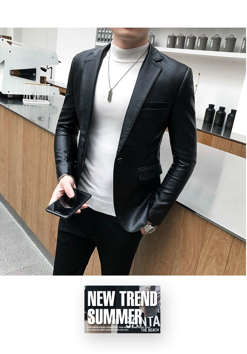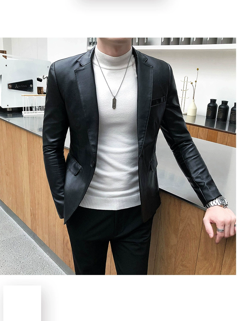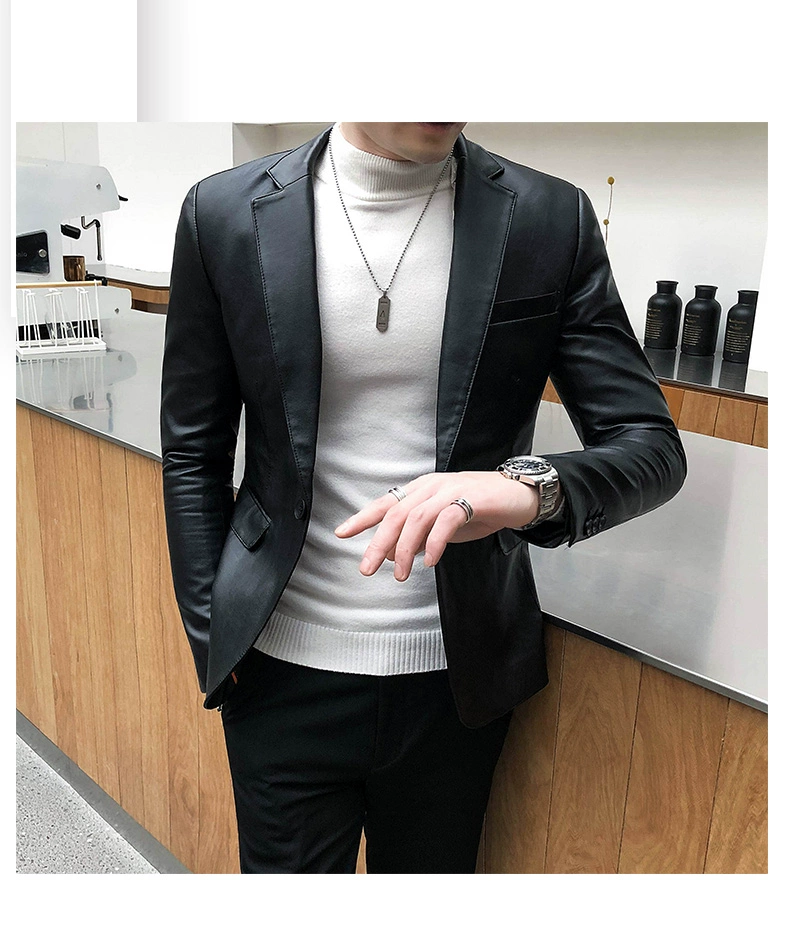 Мужской кожаный пиджак, приталенный деловой пиджак, 2021