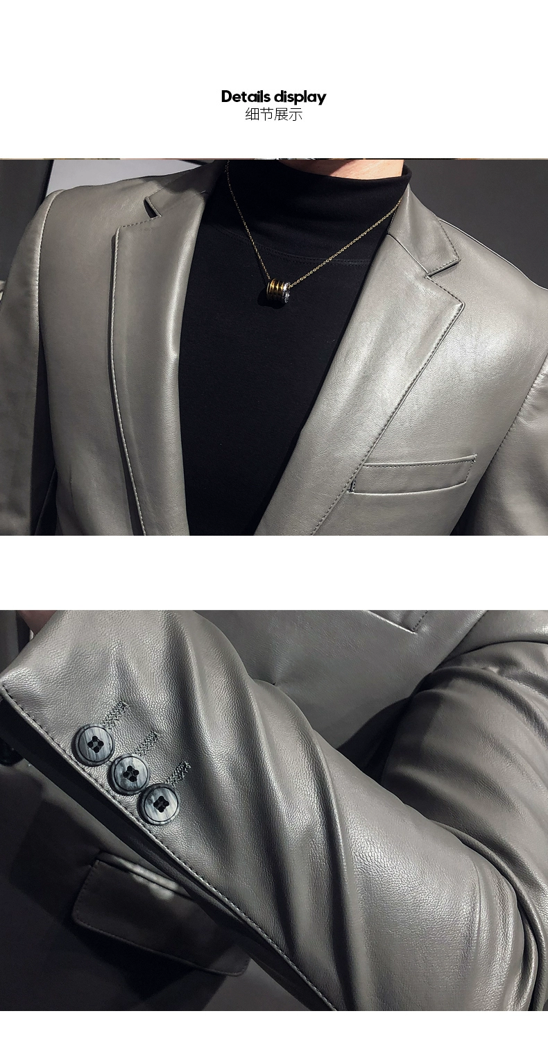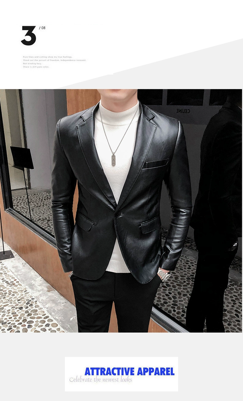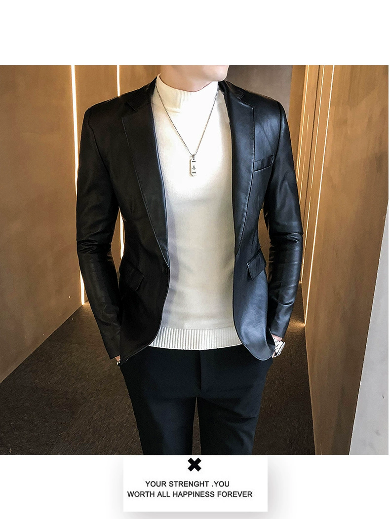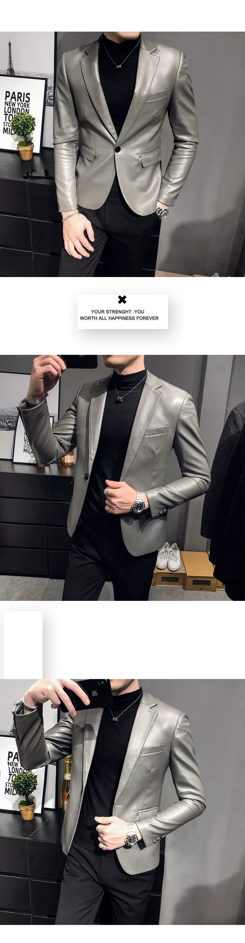 Мужской кожаный пиджак, приталенный деловой пиджак, 2021